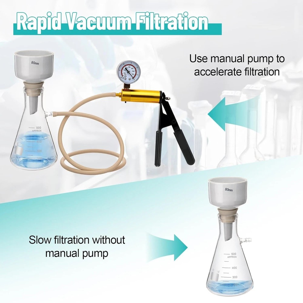 DESCRIPTION PAYMENT SHIPPING RETURN POLICY CONTACT US Shop Category Store Home vials Analytical Balance Buchner Funnel Flask Kit Other Hot Item buchner funnel filtering kit vacuum filter flask set with 1000ml filter bott USD 42.99 10Pcs 60mm Glass Petri Dishes with Lids Autoclavable Lab Petri Plates Reusable USD 18.99 Microscope Stage Micrometer Calibration Slide 0.01mm with 4 Scales USD 12.99 1000gx0.01g Analytical Balance Digital Lab Scale High Precision Electronic Scale USD 20.99 60/90/100mm Glass Petri Dishes with Lids Autoclavable Lab Petri Plates Reusable USD 28.99 Delivery New List Item 30L Lab Water Bath Digital Thermostatic Heating Modules Timing Function USD 389.99 20ml Scintillation Vial Liquid Sample Vials Clear Glass Vials Cone Liner 1000pcs USD 45.99 Magnetic Stirrer Mixer 0-1600 RPM with Stir Bar Max 1000ml Stirring Capacity US USD 27.99 20ML Scintillation Vials 100PCS Lab Borosilicate Glass Liquid Scintillation Vial USD 34.99 60ml Water Oil Receiver Separator w/ 24/40 Joint , Stand Glass Lab Distillation USD 39.99 Help & Info Payment Policy Shipping Policy Return Policy FAQ About Us Lab Manual Hand Vacuum Pump Lab Hand-held Vacuum Pump Pressure Suction Pumps Package includes: 1 manual vacuum pump with pressure gauge, 1m (39") tube for filtration Premium Construction: Our heavy-duty handheld vacuum pump features a high strength metal housing. The flexible tube maintains excellent elasticity and fits most standard vacuum filter inlets Rapid Vacuum Filtration: This hand held vacuum pump speeds up filtration significantly—ideal for processing large volumes or viscous liquids. Unlike slow gravity filtration, it delivers fast within short time Simple Operation: Generates 0-30 inHg (0-760 mmHg) vacuum pressure. Simply connect the pump and tube to your filter unit's nozzle, then pump the handle to create suction. The air then quickly releases through the exhaust port while filtering Wide Applications: Wide Applications: This compact vacuum pump works with most filtration systems, perfect for labs, classrooms, and mechanism. Note: Hose inner diameter is 6mm - please check sizing before ordering Item Specifics Brand : Creahub Intended Use/Discipline : Biological Laboratory Model : Vacuum Pressure Pump Tester Kit Feature 1 : Wide Applications Feature 2 : easy to use Refund will be given as : Money back or replacement (buyer's choice) Payment A dditional shipping fee may be charged for buyers from Puerto Rico, Hawaii, Alaska, Guam, and the U.S. military address of the United States or other remote area (zone 8-10). Most of the items come with a 30-day warranty covering manufacturing defect. High value products would get a longer warranty, some of them up to 2 year or 5 years or lifetime warranty, excluding any damage by the user. Shipping Ship from: California USA or KY Warehouse Or IL warehouse Or NY Warehouse. US: about 1-6 business days; Note:Please leave us your detailed valid street address because big package is not allowed to be stored in PO.BOX. Returns 1)Buyers are responsible for the item return shipping fee. 2) Please note that all return must be pre-approved by our co-worker,and it have a return merchandise anthorization(RMA)number.Unauthorzed return will not be accepted. Contact Us 1) We greatly appreciate your Five Stars Positive feedback. It means a lot to us. Thanks for your support. 2) You can bookmark our store for your next purchase All right reserved.