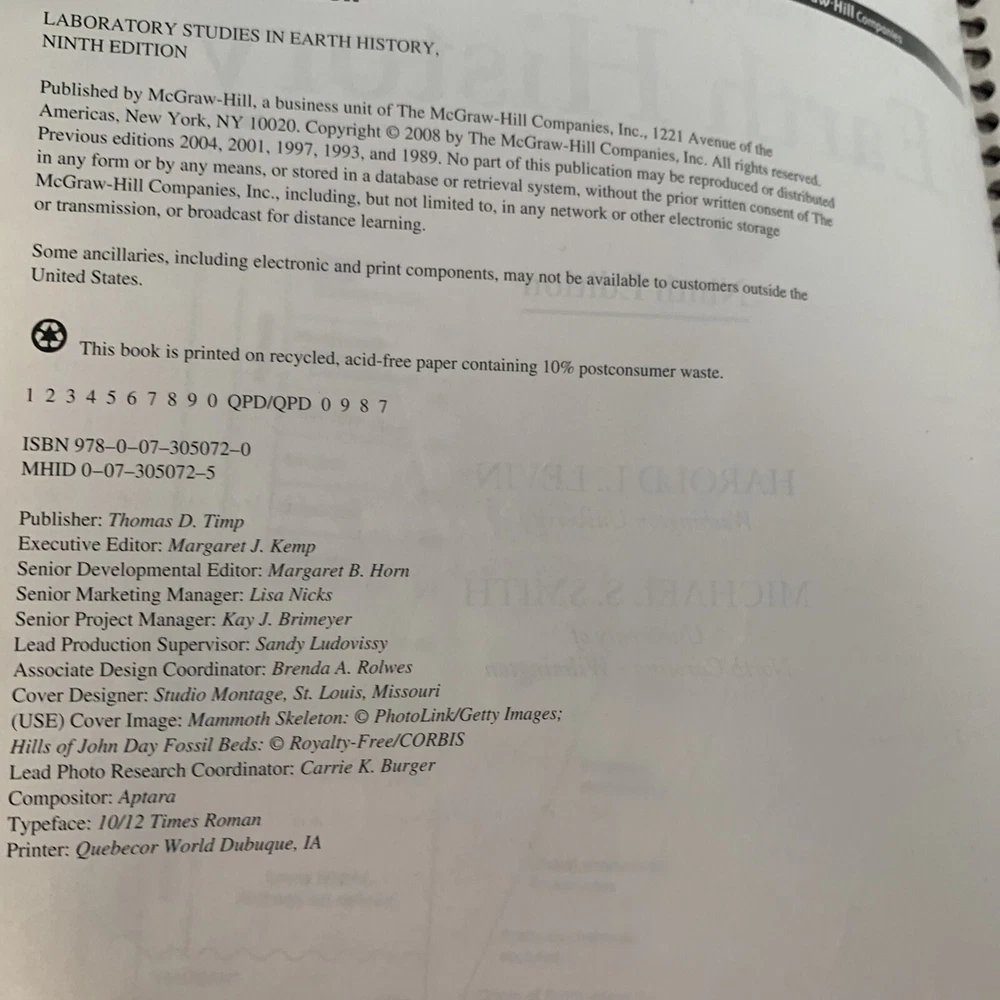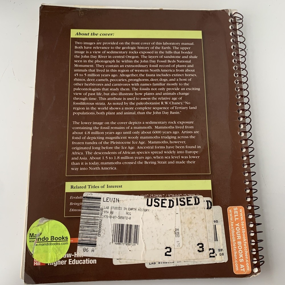 The product is a textbook titled "Laboratory Studies in Earth History" by authors Michael S. Smith and Harold L. Levin. Published by McGraw-Hill Higher Education in 2007, this spiral-bound textbook is 10.8 inches in length, 8.7 inches in width, and 0.6 inches in height. It weighs 23.6 ounces and contains 288 pages. The book falls under the subject areas of Science, specifically Earth Sciences and Geology, making it a valuable resource for students and enthusiasts interested in the Earth's history and geological processes.