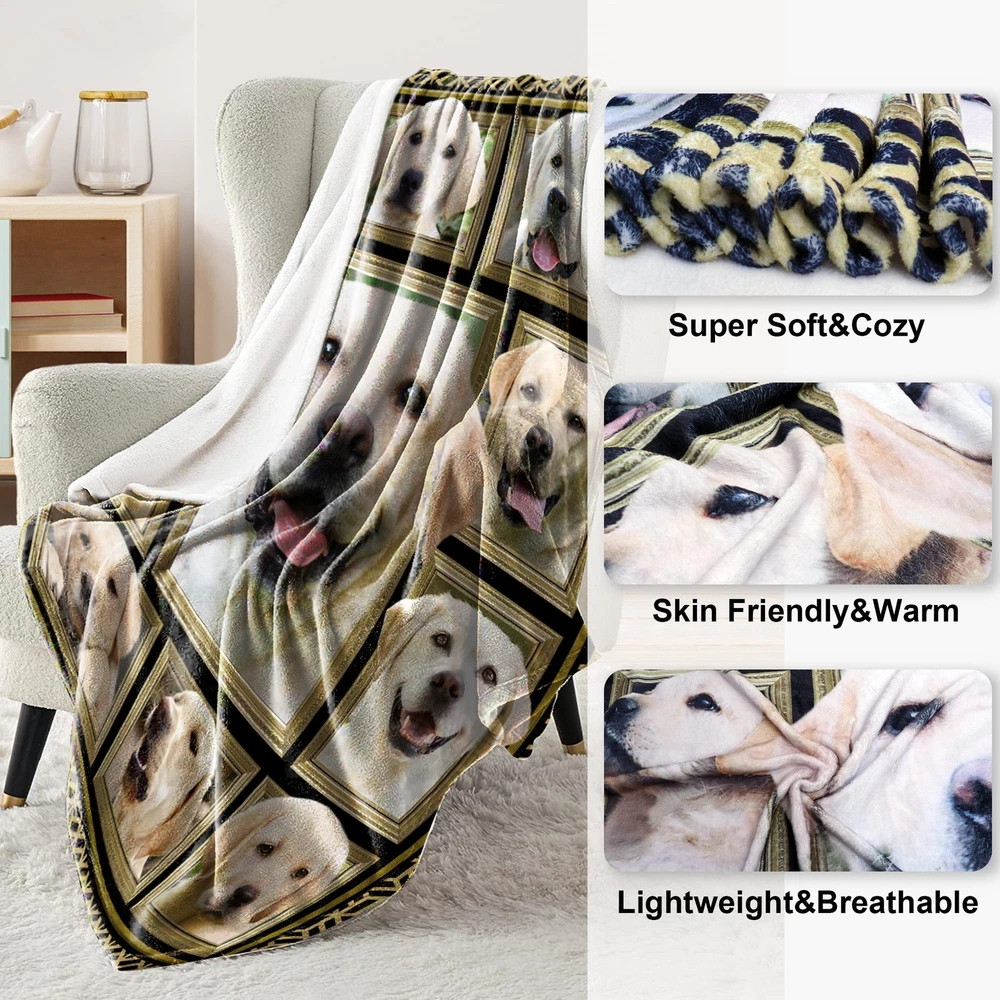Soft & Cozy Blanket: the blanket is made of premium polyester and breathable high-density flannel material, making blankets fine, smooth, and super soft to the touch. Not easy to shed the villus and keep warm but not stifling hot, so that you can use this blanket in all seasons. Perfect Labrador Retriever Blanket: Labrador Retriever gifts for kids, women, men, family, and friends. The Labrador Retriever blanket seems like a mother's hug, keeping you warm and cozy. It will bring your friends, son, daughter, families, and Labrador Retriever lovers a cheerful mood and is a perfect Labrador Retriever room decoration for women and men. Labrador Retriever Gifts: Show her/him how much you love her/him with a delicate gift, and don't settle for an average gift. Imagine when her/he opens this Labrador Retriever blanket and realizes it's the perfect gift for her/him from you! Labrador Retriever blankets are exquisitely printed and touch soft and are the ideal gift for birthdays, Valentine's Day, Mother's Day, Thanksgiving, Easter, Christmas, and other holidays. Versatile Blanket: This warm blanket is perfect for reading, watching TV, relaxing on the couch, or home decorating. It can be used all year round. It is perfect as a home blanket, snuggle blanket, nap blanket, office chair lap blanket, sofa blanket, bed throw, outdoor travel blanket, baby blanket, children blanket, etc. Excellent After-sales Service: Machine washable and tumble dry at low temperature. Maintains its color and does not shed. If there is any problem with our blankets, you can contact us at any time. We promise that we will provide a 30-day return and exchange service as well as lifetime free customer service. We believe you will fall in love with the blanket and hope to add warmth to your life.