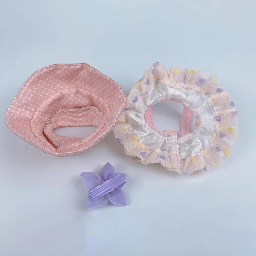 Package List Purple heart-shaped dress + small flower hair accessory + wavy straw hat + purple small water bottle (No Doll) Product Description Premium Materials: Crafted from high-quality knit fabric for the hat and delicate floral print fabric for the dress with soft pink and purple color scheme. Perfect Gift Option: This adorable outfit enhances your doll's charm with kawaii style. An ideal gift for children and friends on Christmas, Valentine's Day, Mother's Day, birthdays, and anniversaries. Fit For 15cm/17cm Dolls: Doll Clothes Tailored for Doll Series 1/2/3(Macaron Series/Have a Seat Series/High Alert Series). Elegant Design: Features a charming combination of vintage-inspired bucket hat and layered ruffle dress with decorative bear button accents. Complete Set: Includes a pink knit bucket hat with bunny patch, floral print ruffled dress with bear button details, and a purple flower accessory for 17cm dolls.