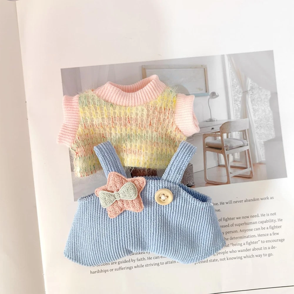 Product Description Cute Plush Dolll Clothes Material: Polyester Suit for 6.7 inches Doll Adorable Design: These cute plush doll clothes feature fun and stylish designs that will make your dolls look extra charming and fashionable. Perfect Fit: Designed specifically for plush dolls that are 6 inches in size, these doll clothes are tailored to fit perfectly and accentuate your doll's unique features. High-Quality Materials: Made with premium materials, these plush doll clothes are soft, durable, and easy to clean, ensuring long-lasting enjoyment for your little one. Collectable Set: Add these doll clothes to your collection of accessories for endless mix-and-match options, making playtime even more fun and creative. Ideal Gift: Whether for a birthday or special occasion, these plush doll clothes make a thoughtful and delightful gift for any plush doll enthusiast, bringing joy and excitement to their playtime.
