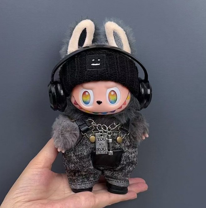 This Labubu streetwear set is absolutely adorable! The tiny hat, pants, necklace, shoes, and headphones add so much personality to my plush. The quality is great for the price, and the handmade details make it feel special. The seller was super responsive when I had sizing questions—definitely recommend for Labubu fans looking to spice up their doll’s wardrobe!