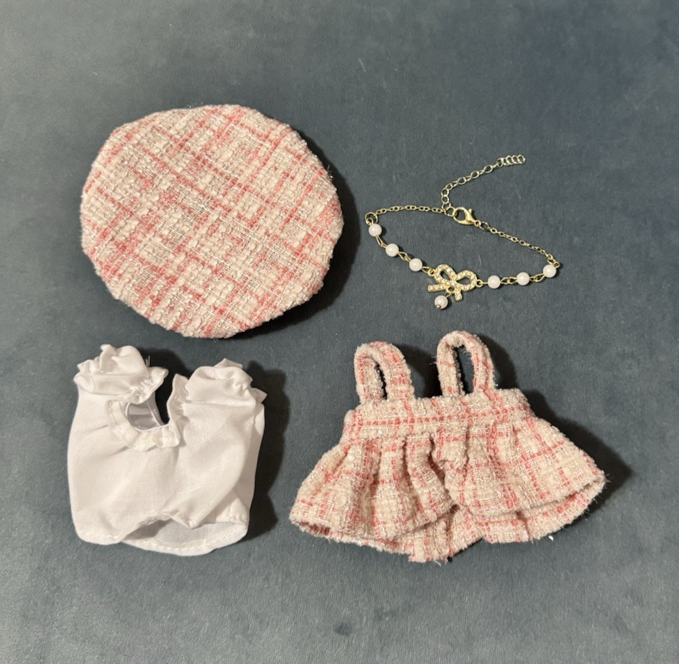 Labubu OOTD Pink Dress with Hat and Necklace Outfit Only - No Doll 100 % Brand New
