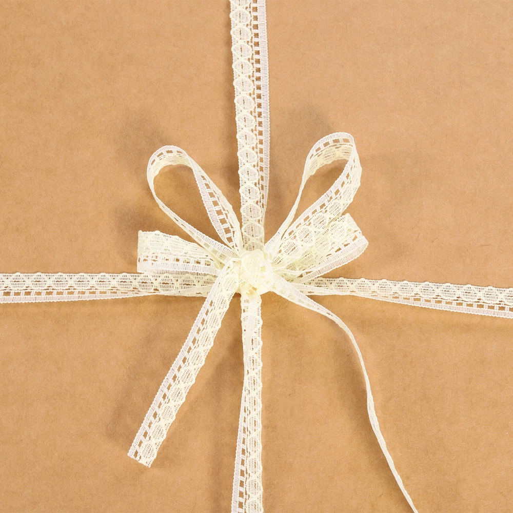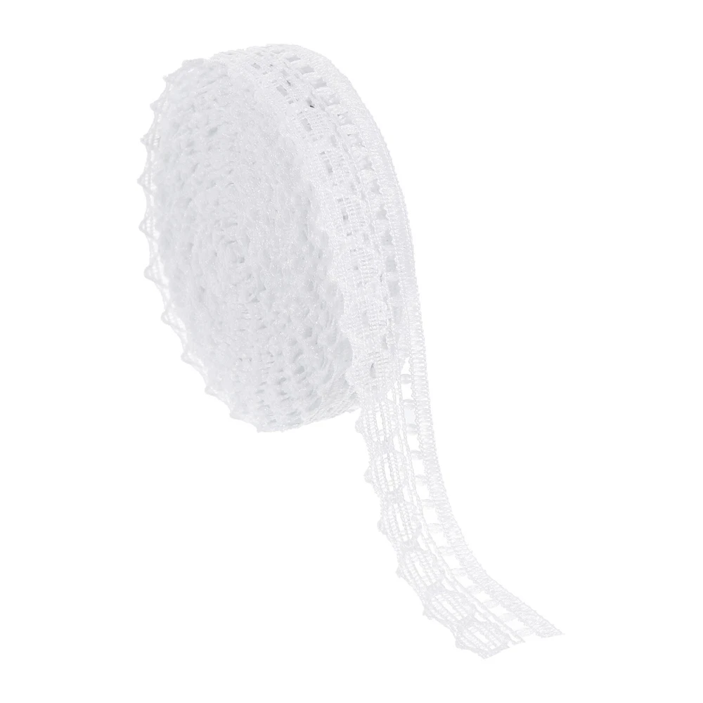 What is this? This lace ribbon is suitable for various DIY projects such as gift wrapping, headbands crafting, wedding decorations, and more. What will I get? Lace ribbon x 1; Length: 10 Yards; Width: 1/2 Inch; Color: White; Are there any advantages of the product? The lace ribbon is comfortable and soft to the touch, allowing it to stretch easily for easy application in different objects and surfaces. This product is versatile and can be used for multiple purposes, such as creating hair accessories, decorating home items and clothes. How to use it? You can cut the ribbon to the desired length using scissors and add any embellishment you like, such as beads or pearls. The material allows you to wrap it around any object tightly to create a seamless and decorative look. What should I notice? Handle the ribbon carefully to prevent it from tearing. It is recommended to store the ribbon in a dry and cool place to ensure its quality and longevity.