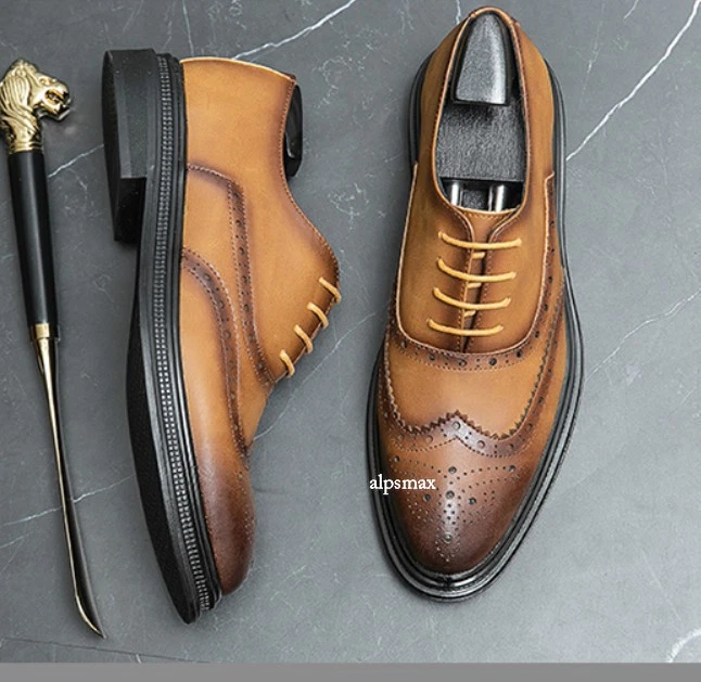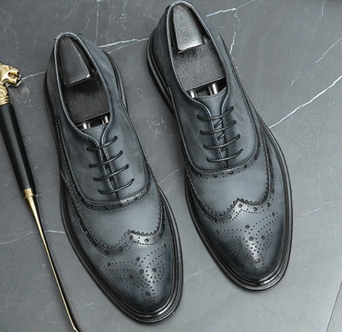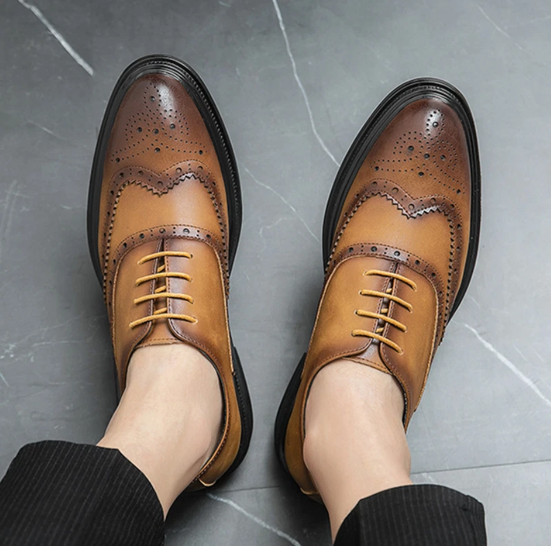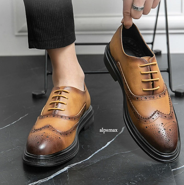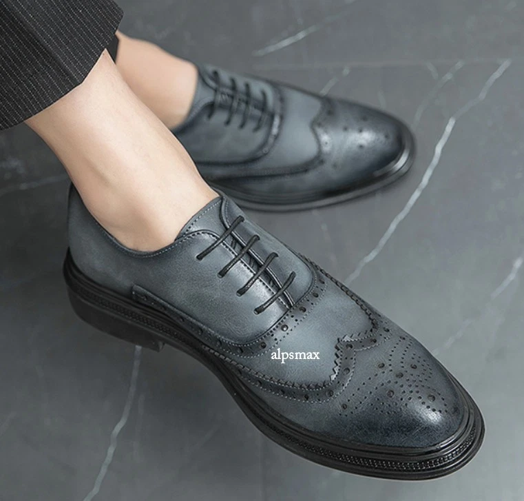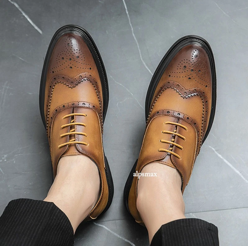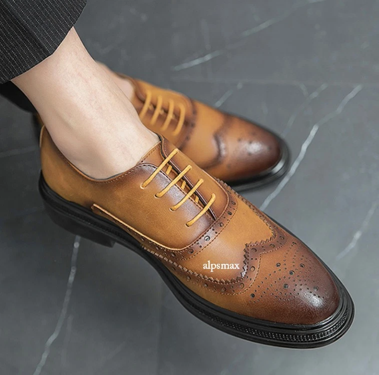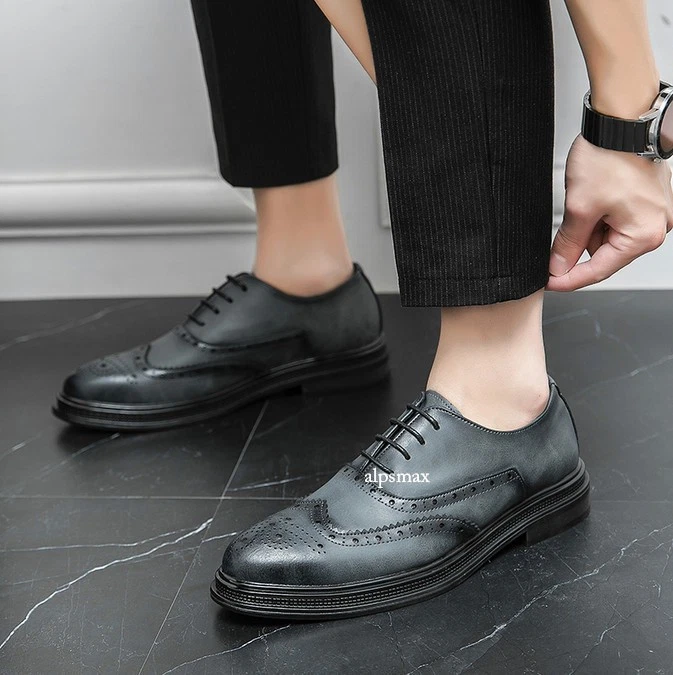 Lace Up Brogues Wing Tip Carved Formal Dress Men's Business Wedding Shoes Casual