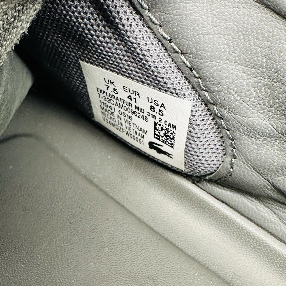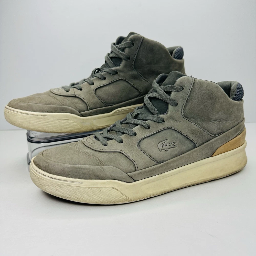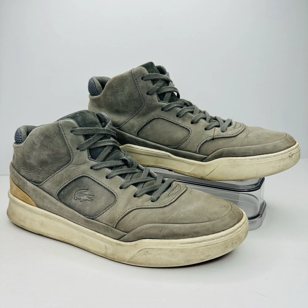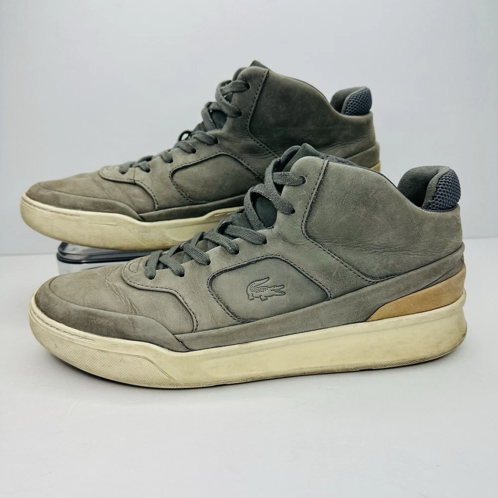 Lacoste Explorateur Mid Sneakers Mens Size 8.5 Gray Leather Designer Sneakers. Great used condition. See pictures for details.
