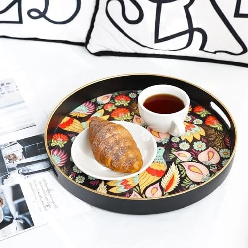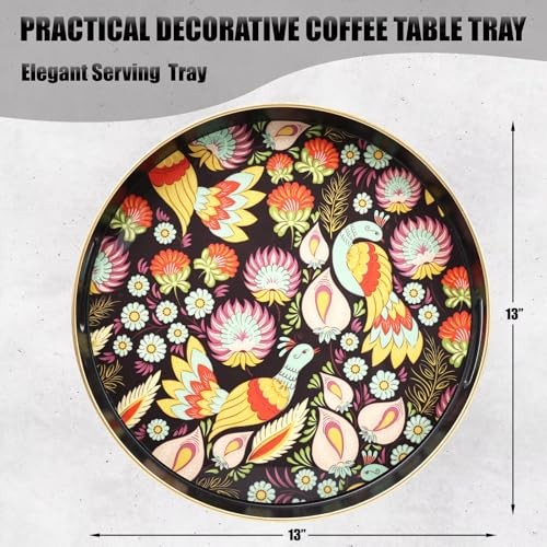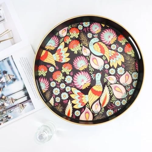 Return Policy Fast Delivery Trusted seller Decorative Serving Tray with Handles, Lacquered Coffee Table Tray for Ottoman, Round Waterproof Platters for Centerpieces, Parties, Living Room, Kitchen Counter Organization Peacock Product Description Versatile & Stylish Design: serving tray with handles is perfect for any setting – from coffee tables to kitchen counters and ottomans. Use it for decoration, serving, or as a centerpiece Convenient for Serving: This tray makes serving at parties and family gatherings easy by reducing trips back and forth. Ideal for food, drinks, and multi-course meals, it helps keep things organized and efficient Sturdy & Waterproof: Made from sturdy plastic, this tray is waterproof and built for everyday use. It’s perfect for both indoor and outdoor settings, including patios and outdoor dining Easy to Stack & Store: Designed to be compact and stackable, the tray saves storage space in kitchens or dining areas. Its practical design makes it easy to store when not in use Multi-Use Functionality: Great for both serving and storage, it doubles as a stylish organizer for vases, candles, or perfumes. Perfect for entryway tables, vanity stations, or as a decorative piece Shipping Returns Payment Shipping Shipping is FREE to all addresses other than APO/PO boxes in the lower 48 states. All our stock ships from US-based warehouses. Shipped via USPS or UPS (depending on location and package weight) Unless stated otherwise, all orders will ship within 24-72 hours of your payment being processed. Check our feedback to see the great reviews of FAST shipping we offer. Returns Seller does not accept returns Payment We currently accept payment via eBay managed payments only. Once payment is cleared, we will dispatch your shipment within 1-3 business days. Please refer to the "Shipping" tab for more information regarding shipping speed to your destination.