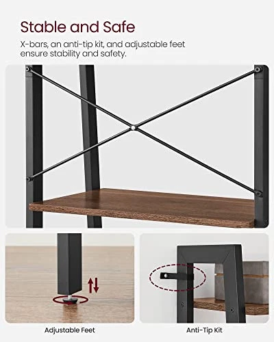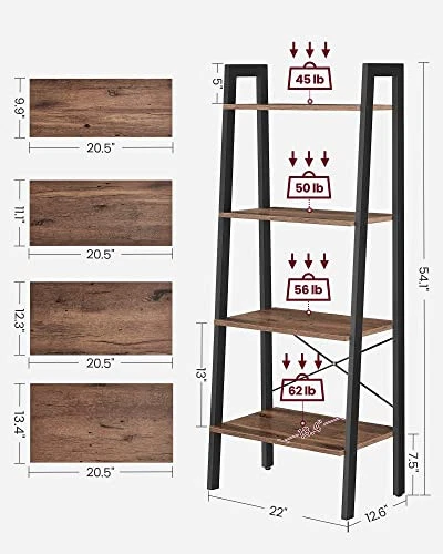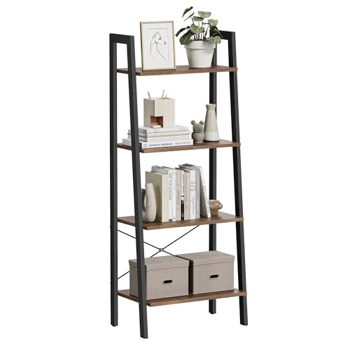 Ladder Shelf, 4-Tier Bookshelf, Storage Rack, Bookcase with Steel Frame, for