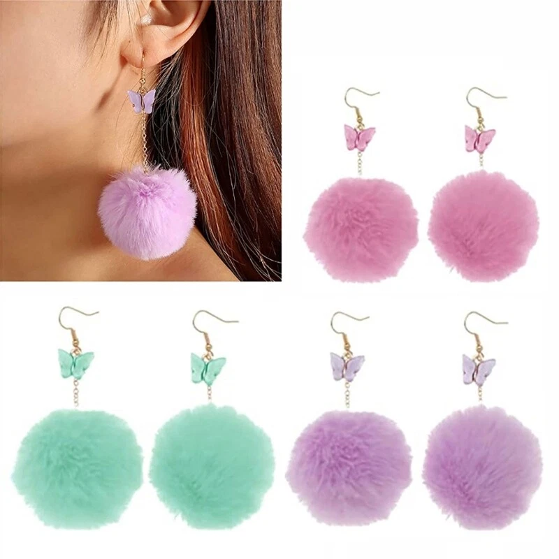Features: Pom Pom earrings consist of butterflies pendants and balls. Very light in weight, dancing with the wind, you will have a very unique charm when wearing it. Pom hair earrings are handmade, can all your clothes, and are suitable for all scenes. artificial fur and stainless steel, it is comfortable, light, durable and well-made and can accompany you for a long term. These earrings are special gifts for girls, daughters, good couples, sisters or family members. These fashions are suitable for everyday wear and can be used in many occasions, such as Valentine's Day, Christmas, Mother's Day, Thanksgiving Day, Birthday, Wedding, Party, Anniversary, Prom and Leisure Day, which means that everyday life is better. Specifications: Color Blue Stainless Steel+ Plush Size:Approx.4x9.5cm/1.57x3.74in Quantity:1 Pair Package Includes: 1 Pairx Earrings note: Please allow a little error on the size due to manual measurement. The color might exist slightly difference due to different displays.