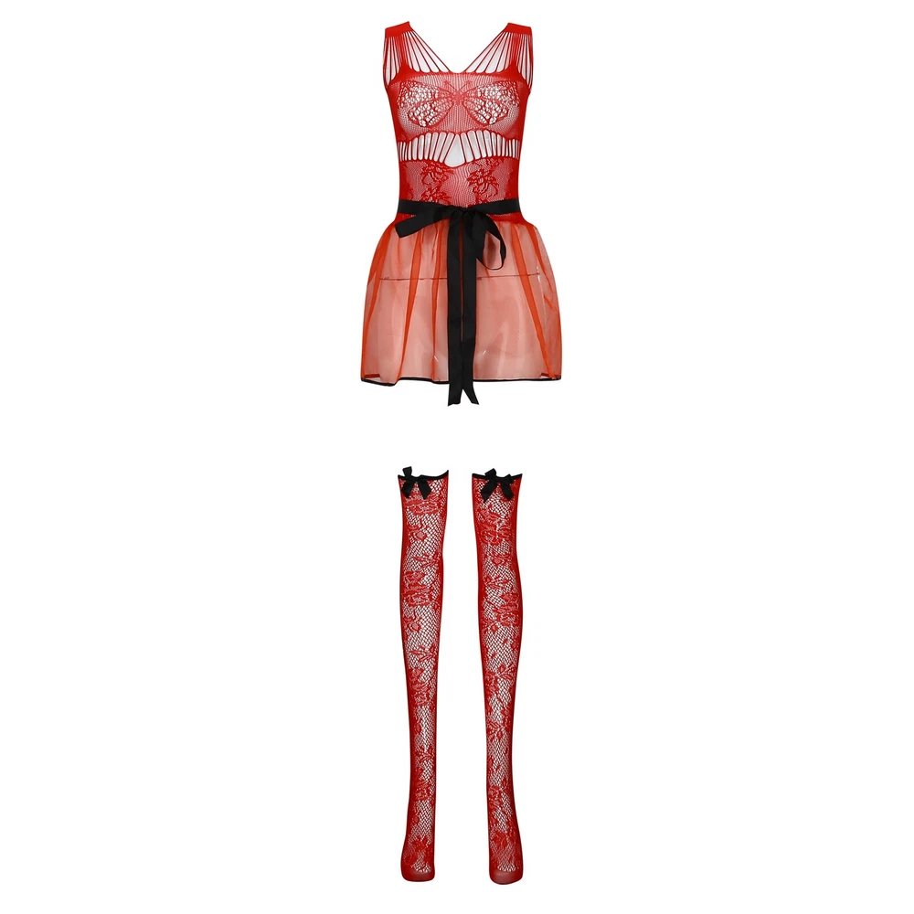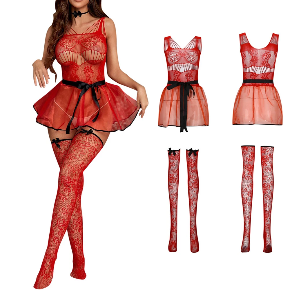 Ladies' Christmas Red High Elasticity High Mesh Bow Sleeping Skirt Set Features: Slip lingerie for women, chemise lingerie, nighties for women features a flowy attractive bottom with exquisite lace patchowrk on edge, charms to your body and adjustble straps help you to find most fit no matter what type of your body comfortable sleepwear with decent floral lace detail, no worries scratch the skin you will fall in with the smooth feeling Sexy nighties, lingerie nightgown sexy, lace nightgown lingerie dress,featuring plunging V-neck and floral lace detail patchwork, help you to show your beautiful lines,makes you more in the night Lace chemise sleepwear is versatile able to be worn as a slip under your clothes or wear to bed as a nightgown,lingerie for women,sexy sleep dress for daily home wear or spicy up your life on special night, wedding night, and anniversary Different Will Have A Slight Color Difference, Please Don't Mind Product Description: Season: Gender:Women Material:Polyester Style:Sexy How to wash:Recommended With Cold Water / Do Not Bleach / Hang Or Line Dry What you get:1PC nightgown+1PC neck loop+1 pair of socks Size Bust Waist Length One Size 75-120cm/29.53-47.24'' 65-110cm/25.59-43.31'' 52cm/20.47'' Size:One Size Bust:75-120cm/29.53-47.24'' Waist:65-110cm/25.59-43.31'' Length:52cm/20.47''