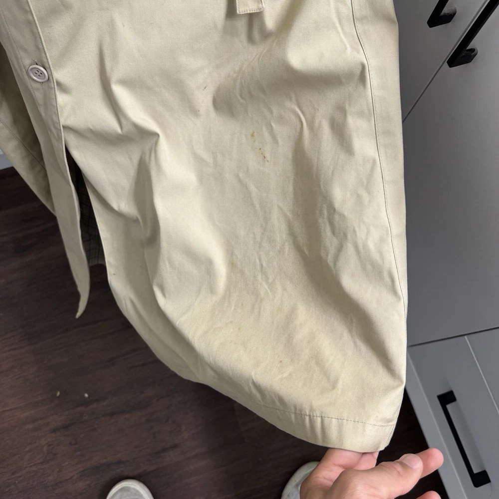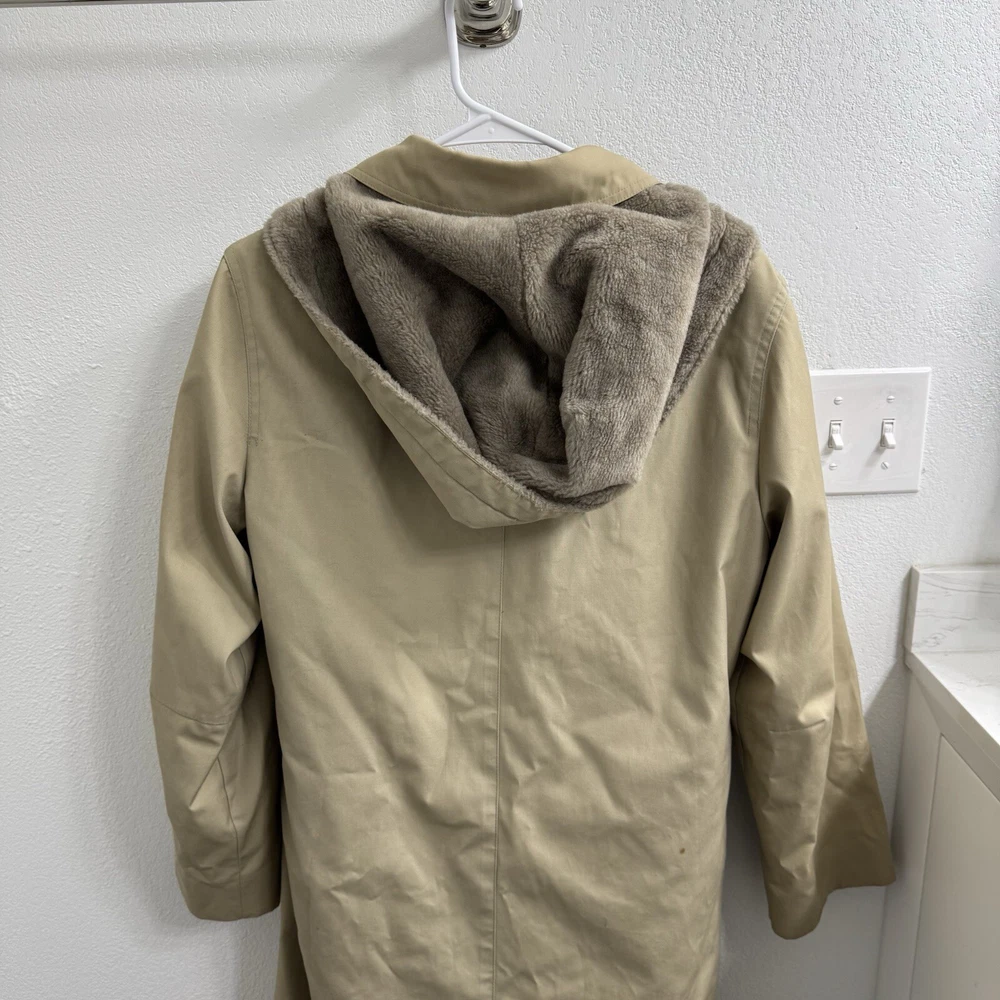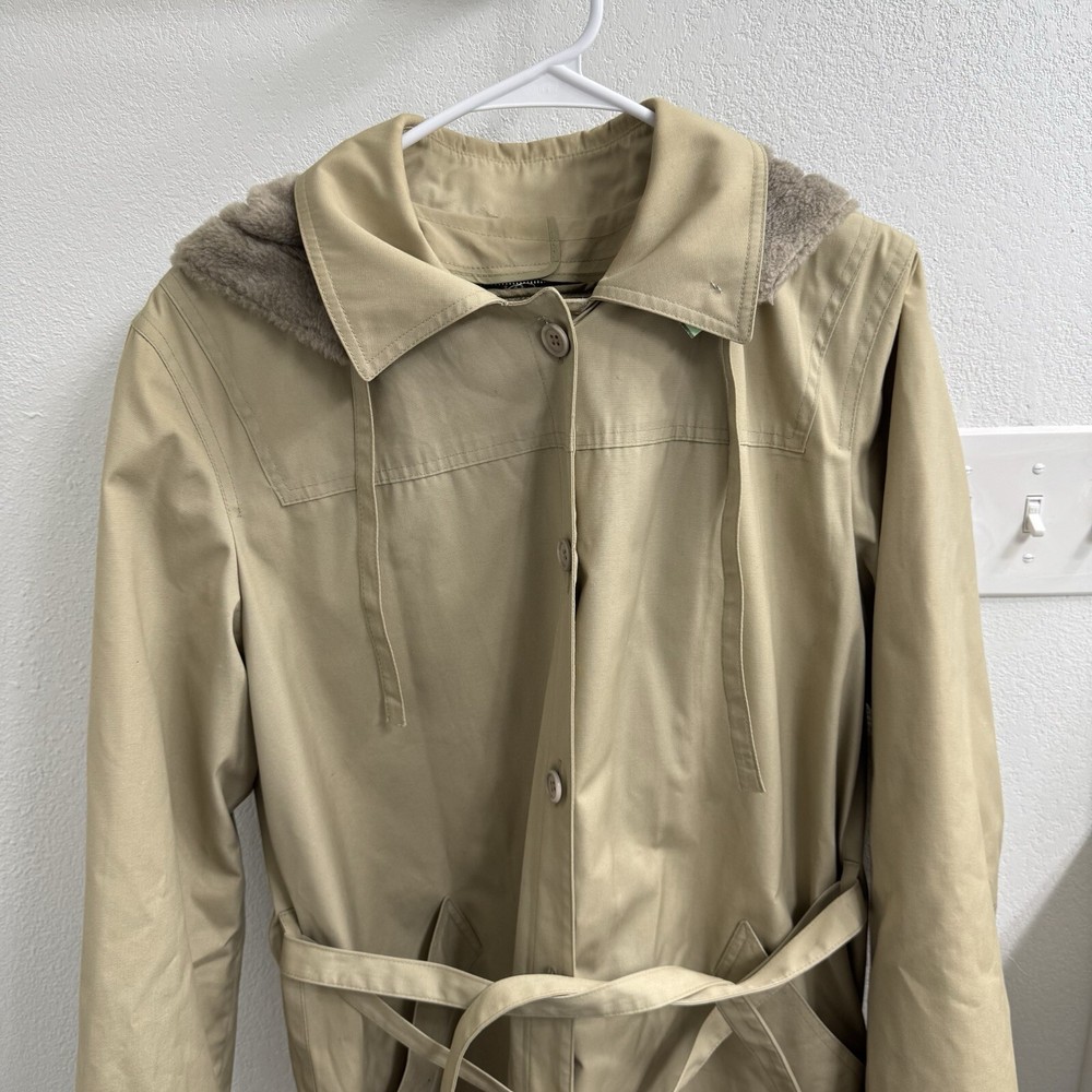 Elevate your rainy day wardrobe with this stylish London Fog Towne Trench Coat. Crafted from a durable cotton blend, this beige coat features a zip closure and removable hood for versatile wear. The outer shell material provides long-lasting protection against the elements, while the zip closure ensures a secure fit. Ideal for women who love practical style, this size 14 coat boasts a range of features including a removable hood and zip out lining for added warmth. The classic trench coat design is perfect for any occasion, from a casual day out to a more formal event. Upgrade your rainy day ensemble with this must-have coat from London Fog.