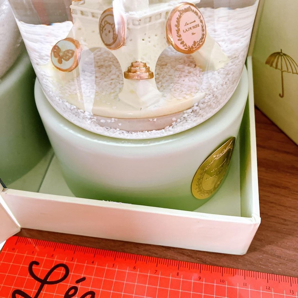 Ladurée Paris Eiffel Tower Snow Globe Music Box France Collectible Vintage Features Product Description: - Brand: Ladurée - Product Type: Snow globe music box - Origin: Purchased in Paris, France about 15 years ago - Features: The base functions as a music box with a wind-up key on the back; the globe contains a snow globe scene - Condition: Stored in a dark place; the paper box shows some wear due to age and transport; music box mechanism works - Notes: Vintage item kept in home storage; minor deterioration on packaging expected Item Specifics: Brand: Ladurée Type: Snow globe music box Origin: France Age: Approximately 15 years old Condition: Used - good working condition with minor packaging wear Specifications Brand Laduree Country Japan Country/Region of Manufacture Universal Time Period Manufactured 1970-Now Handmade Yes Description ★If you feel the price is too high, please feel free to make an offer. Price negotiation is possible. Item Title Ladurée Music Box Snow Globe Eiffel Tower France Paris Payment Supports managed payments Please pay within 5 days after auction is finished. About Us We are located in Japan. It's our pleasure to make you happy by proposing our recommend item. If you have any questions or request about items, please feel free to ask us. International Buyers - Please Note: -Import duties, taxes, and charges are not included in the item price or shipping charges. These charges are the buyer's responsibility. -Please check with your country's customs office to determine what these additional costs will be prior to bidding/buying. -These charges are normally collected by the delivering freight (shipping) company or when you pick the item up - do not confuse them for additional shipping charges. -We do not mark merchandise values below value or mark items as - gifts - The US and International government regulations prohibit such behavior. Thank you for your understanding.