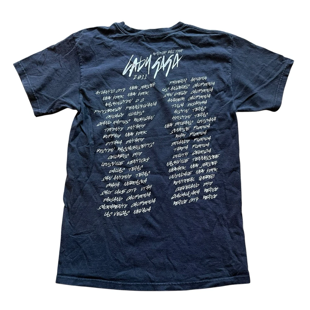 Great condition, no flaws. Measurements in photos. Message me any questions! Get ready to rock the stage with this black Hanes T-shirt featuring a bold graphic of Lady Gaga's Born This Way Monster Ball Tour 2011. This shirt is perfect for any fan of the pop icon and is made with high-quality materials to ensure a comfortable fit. The shirt is designed with a regular fit for men and is available in size small. The shirt is solid black in color and features the iconic Lady Gaga graphic on the front. It is perfect for casual wear or for dressing up for a concert or party. This T-shirt is a must-have for any Lady Gaga fan and is sure to make a statement.