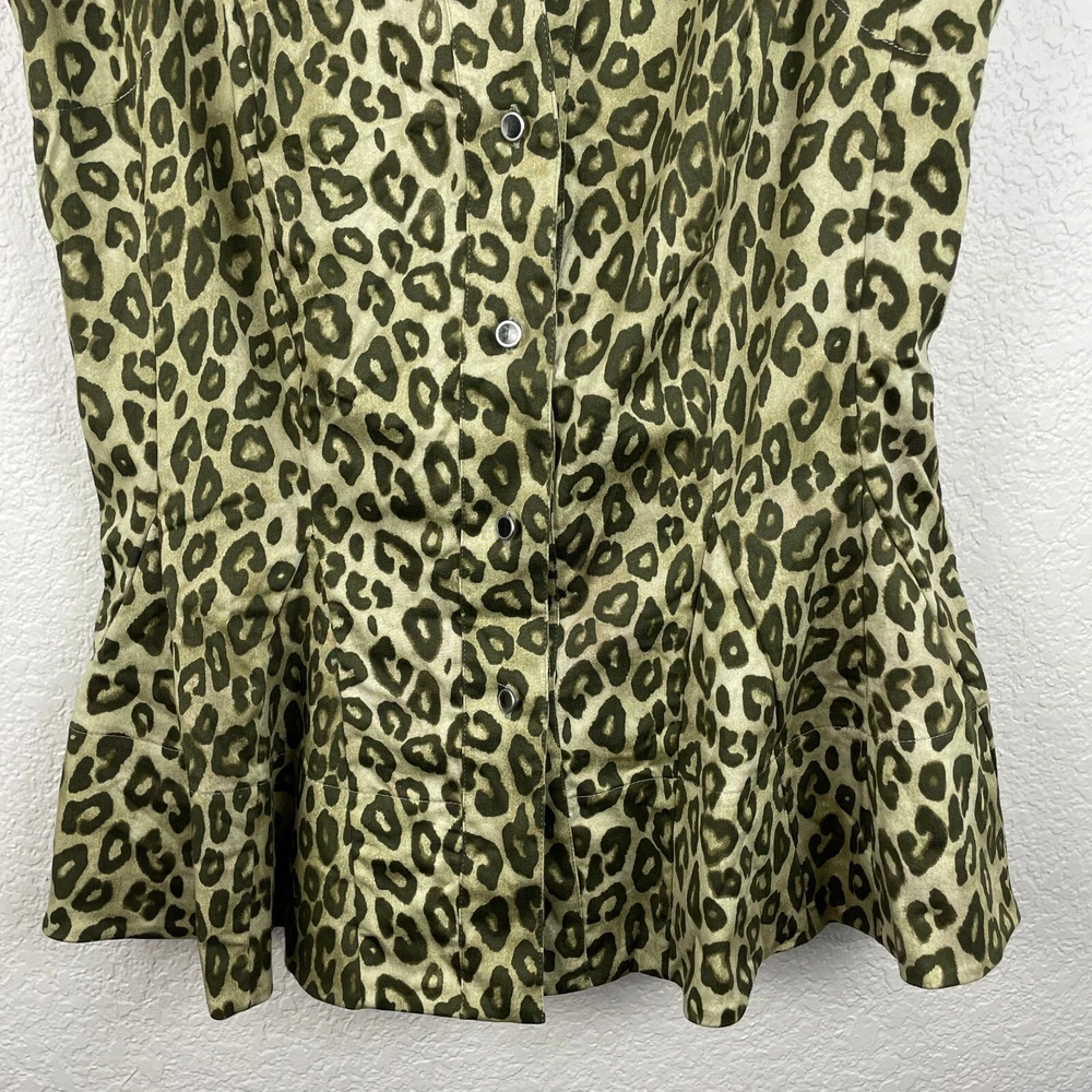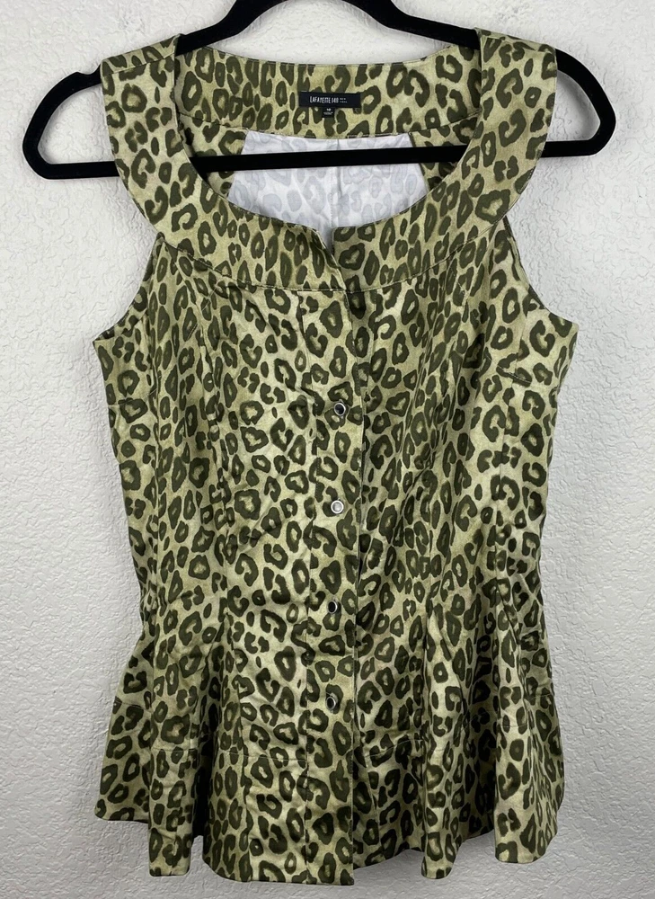 Lafayette 148 Top Womens 10 Leopard Animal Pattern Peplum Hem Mob Wife Button Up