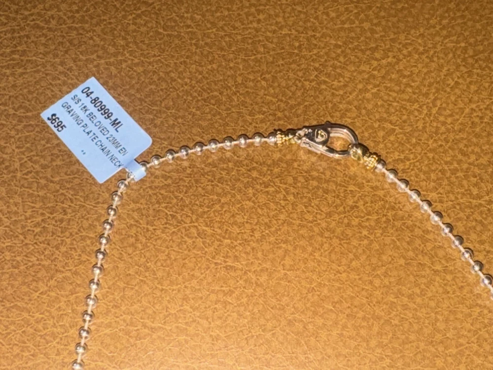 Lagos Beloved 18K Silver Caviar Oval Name Plate Heart Necklace 16-18” NWT $750.00 Overview: Elevate your jewelry collection with the Lagos Beloved 18K Silver Caviar Oval Name Plate Heart Necklace. Crafted with solid sterling silver and luxurious 18k yellow gold, this necklace is a testament to elegance and personal style. The beaded statement piece features an oval pendant filled with oval-shaped stones, creating a dazzling display that's sure to catch the eye. The heart of the necklace rests at an 16-18” inch length, making it a perfect choice for those who appreciate a substantial yet comfortable fit. With its lobster clasp closure, the necklace is both secure and easy to adjust. Whether you're dressing up for a special occasion or accenting your everyday look, this necklace brings a touch of sophistication to any outfit. The pendant can be engraved. Brand: LAGOS Condition: New With Tags Type: Necklace Retail Price: $750.00 Glamour Galleria Holiday Sale (Limited Time Savings): -Listed At $549.99 (33.3%) Off $750 Retail Savings - Best Price Listed On EBay (NWT) All Prices Are Firm! Collection: Beloved About Lagos: Lagos is a premium luxury jewelry brand known for its distinctive Caviar beading technique and a blend of classic and modern styles. Jewelry Specs: - Primary Precious Metals & Materials: Solid 925 Sterling Silver, Solid 18k Yellow Gold - 2.5mm Ball Chain - Length Size: 16-18” Inches - Features LAGOS Trademark Engraved Features - Lagos Caviar Design - Lagos Heart Motif - Lagos Oval Plate Pendant (Engraveable) - Pendant Dimensions: 9mm x 23mm - Signature Silver & 18K Gold Lobster Clasp -LAGOS Model Style #: 04-80999-ML *Complementary GIA EBay Authentication Orders $500+ Buy With Confidence, 100% Authentic; Originally Purchased Brand New From An Authorized Lagos Department Store Retailer About Glamour Galleria: Elevate your style with our meticulously curated selection of solely authentic premium and luxury brands at the most competitive prices, serving clients since 2021. *Check out our vast selection of Lagos Pieces! Comes With The Following: - Lagos Beloved 18K Silver Caviar Oval Name Plate Heart Necklace 16-18” NWT $750.00 - Red Jewelry Pouch - Hard Jewelry Gift Box 🎁 -eBay Purchase Order Packing Slip & Receipt Shipping & Handling: - Complementary Free Upgraded USPS Domestic Insured Shipping With Tracking - eBay Orders Are Shipped Out Fast & Secure Within One (1) Business Day Of Purchase International eBay Client Orders (Outside US): *International clients are responsible for any customs duties accessed on their international purchase* All Sales Final, if any shipping issues should arise etc. contact seller for prompt resolution. Please message if there are any questions, thank you for visiting this listing!