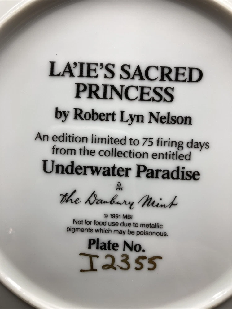 La’ie’s Sacred Princess is a limited edition 8 1/8 inch collector plate from the Underwater Paradise Danbury Mint Collection. This plate is in excellent condition. See more limited edition collector plates, stained glass clocks and vases and Precious Moments collectibles at GiftyGold.com.