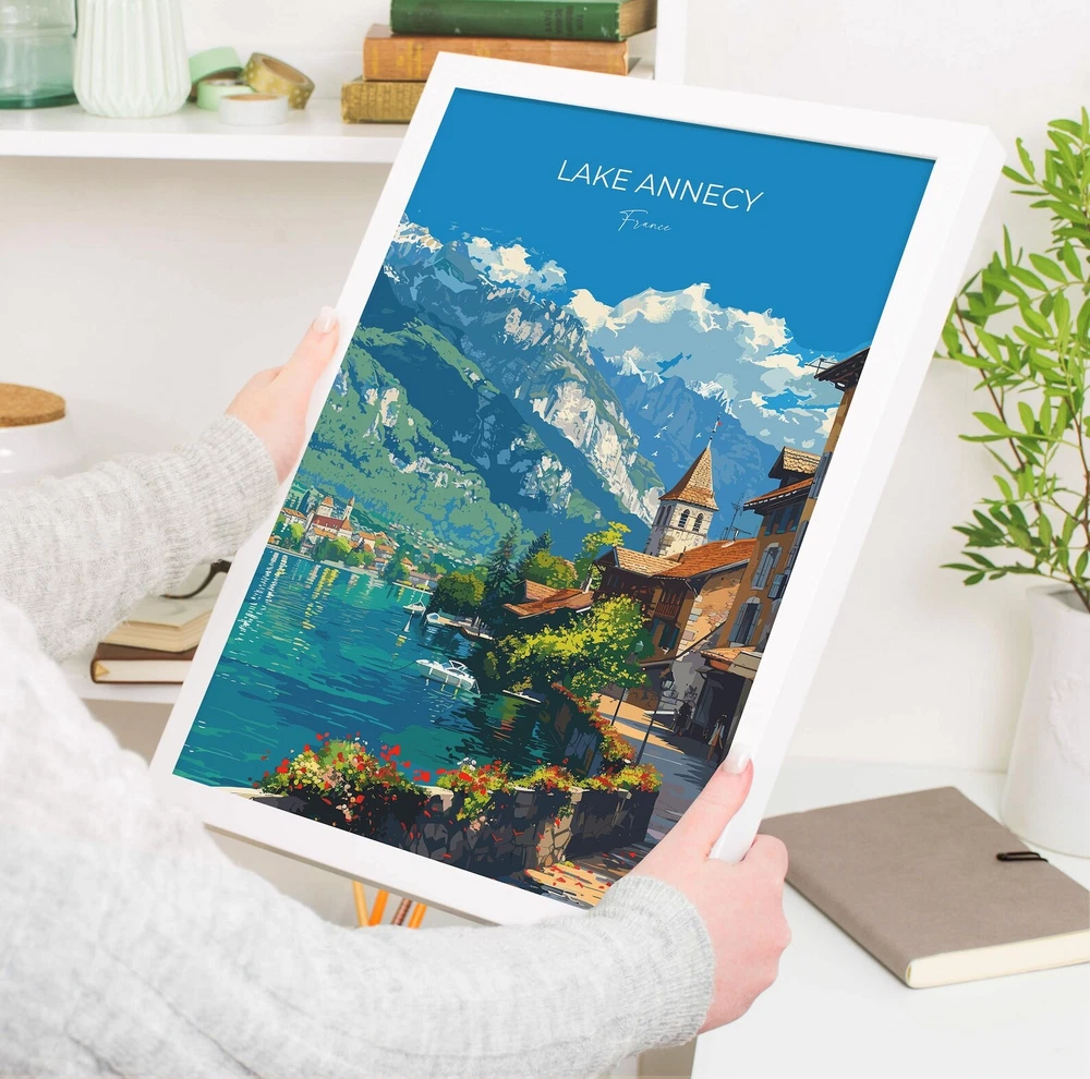 Lake Annecy Travel Print Wall Art Travel Poster Of Lake Annecy Lake Annecy Art Lovers Gift France French Lakes Art Gift Material: Premium luster photo paper Print type: Inkjet printing One side printed + The finish provides the highest possible resolution and color saturation + Lasts up to 200 years in color and 400 years in black-and-white + Printed on high-quality resin-coated photo base paper medium + Posters can be hung with double-sided tape, tacks, or framed + Hand washing with a gentle cry cloth is recommended for extended durability I will hand select the best choice of paper for your chosen design to ensure top quality results for a beautiful, bright and luxurious print. All prints are sealed in cellophane slips for protection during transportation, and are shipped in a protective cardboard envelope.
