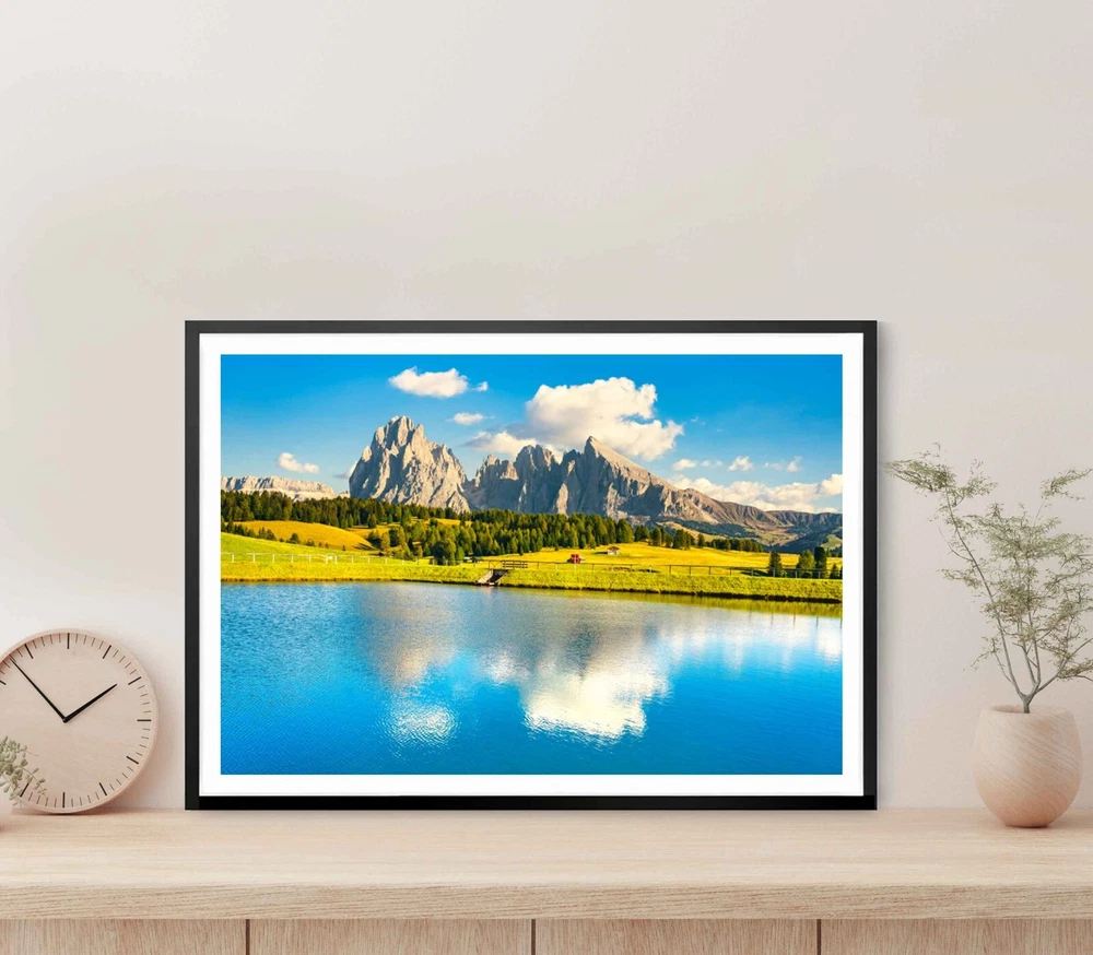Lake & Mountains at Sunset in Italy Poster Premium Quality Choose your Size