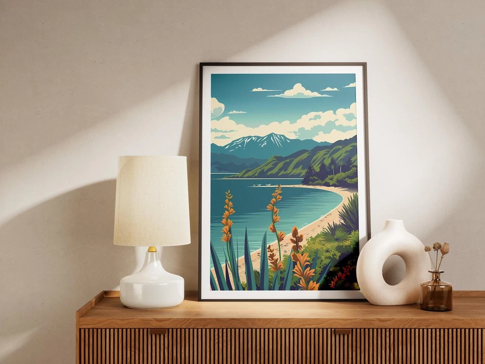 Lake Taupo New Zealand Mountain Landscape Illustration Poster Mid Century Modern Wall Art Travel Print Material: Premium luster photo paper Print type: Inkjet printing One side printed + The finish provides the highest possible resolution and color saturation + Lasts up to 200 years in color and 400 years in black-and-white + Printed on high-quality resin-coated photo base paper medium + Posters can be hung with double-sided tape, tacks, or framed + Hand washing with a gentle cry cloth is recommended for extended durability I will hand select the best choice of paper for your chosen design to ensure top quality results for a beautiful, bright and luxurious print. All prints are sealed in cellophane slips for protection during transportation, and are shipped in a protective cardboard envelope.