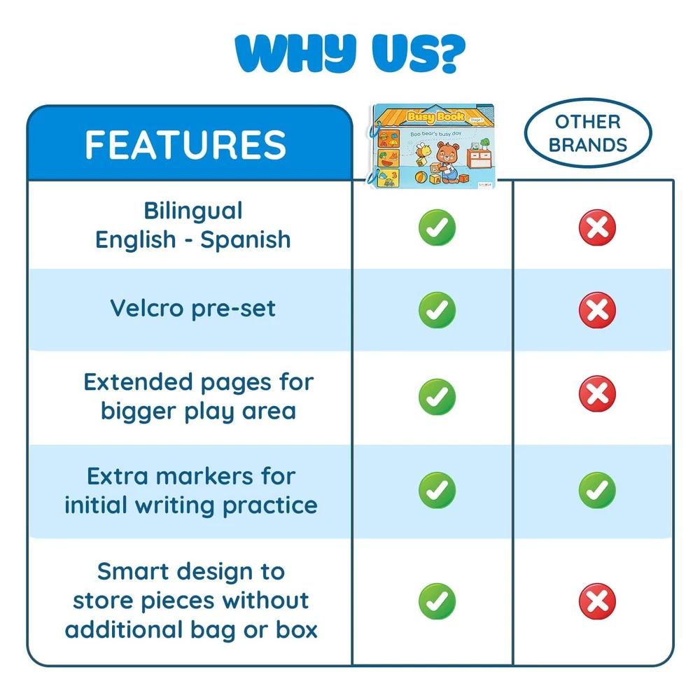 Lalala Baby Montessori Busy Book for Toddlers 1-3, Busy Book for Kids to Develop Learning Skills, Sensory Toys for Kids with Autism, Learning Toys for Toddlers 2-4 Years, Toddler Activity Book Lalala Baby Montessori Busy Book for Toddlers Ages 3 and up | Autism Sensory Activities | Pre K & Kindergarten Educational Toys | Interactive Learning, Alphabet, Colors, Time, Emotions ✅ READY-TO-USE SENSORY LEARNING FOR TODDLERS 1-3: Unveil the realm of seamless learning with this hassle-free educational tool, designed for 3-4-year-old boys and girls. Tailored for age groups 3+, 1-3, 3-4, 4-8, this pre-assembled Montessori sensory book ensures immediate play and learning, making it an ideal introduction to education for toddlers aged 1-3. ✅ BILINGUAL LEARNING DELIGHT: The Toddler's Busy Book offers a fun blend of English and Spanish, covering core concepts like alphabet, numbers, colors, and more. Enjoy family time with entertaining pages, fostering a well-rounded learning journey. With 24 key concepts, it sparks curiosity, ensuring academic readiness for your child's delightful learning adventure. ✅ TRAVEL-FRIENDLY LEARNING: Embrace quiet, educational playtime on the go with our 11x8-inch busy book made of child-friendly cardboard. Portable and easy to carry, it's endorsed by parents for its effectiveness in keeping little ones engaged during travel, making it an ideal addition to your toddler's travel activities for cars, airplanes, and restaurants. ✅ CAPTIVATING LEARNING EXPERIENCE: Dive into Boo Bear's enchanting world in this engaging busy book, where each activity becomes a playful journey from waking up to exploring emotions. Filled with kinesthetic learning activities, it offers a screen-free break while serving as autism sensory toddler toys and supporting speech and occupational therapy. Foster cognitive milestones and focus development, giving your child an early advantage in school through the perfect blend of learning and play! ✅ PERFECT PRESENT: Keeping the children busy and get a moment of silence for yourself when you need. So, this is great gift for our children, even for grandparents and parents. The certification was passed (CPC,Children's Product Certificate), montessori toys for 2 year old, montessori toys for 1 year old Shipping from the USA All of our products are shipped from the USA, ensuring quick delivery to your destination. Payment We offer the following payment methods: PayPal, credit card, bank transfer, and eBay's secure payment system. Free Shipping & Free Returns Shipping within the USA is FREE. Additionally, any return is absolutely free for you. Risk-Free Purchase You have the option to return an item within 30 days without any justification. We cover the return shipping costs! Fast Shipping We ship immediately upon receipt of payment. Generally, the package is delivered within 2-3 days in the USA. If it takes longer, we will contact you. Quality and Costs Made in Europe, USA, China No customs fees or additional charges Total satisfaction guarantee Invoice with declared VAT available upon request in .pdf format Feedback Your feedback is very important to us. After you pay for your purchase, you will automatically receive positive feedback from us.