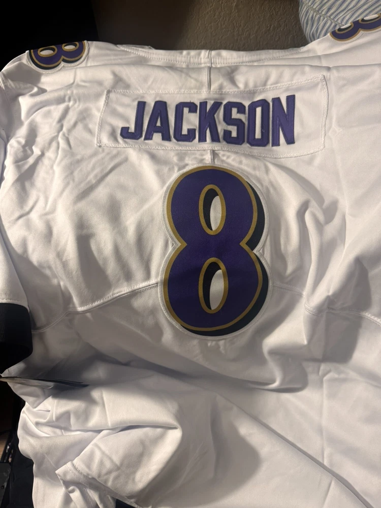 Lamar Jackson #8 Baltimore Ravens Men's Game Limited Jersey White. Condition is New. Shipped with USPS Ground Advantage.