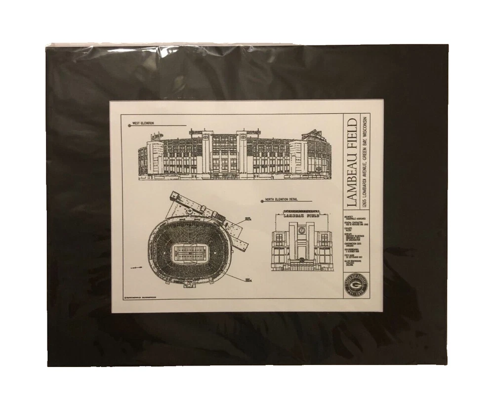 Lambeau Field Blueprint Black White 16" x 20" Football Print Wall Art New