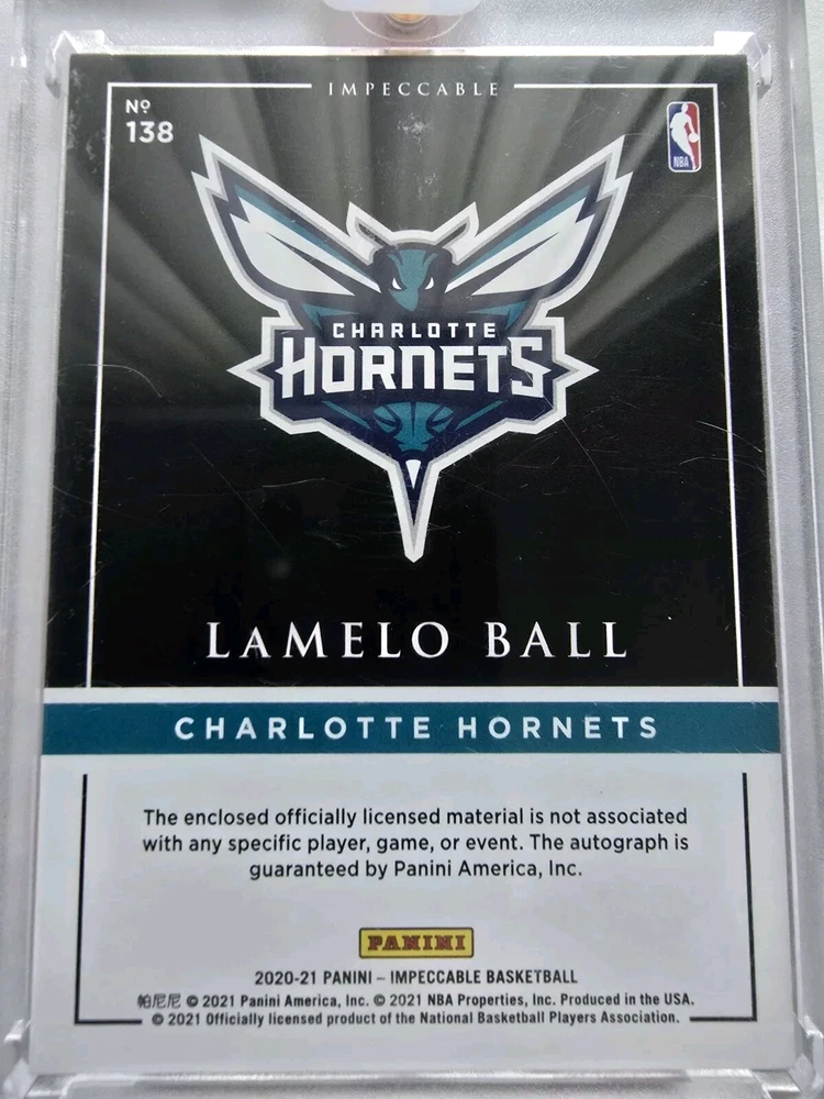 This is a rare opportunity to own a piece of basketball history with this Lamelo Ball autographed trading card. The card comes from the 2020-21 Panini Impeccable set and features a holographic silver parallel variety, making it a unique addition to any collection. With a print run of only 25, this card is truly a collector's item. It is serial numbered and marked as a rookie, making it an even more valuable piece for fans of the Charlotte Hornets and basketball enthusiasts alike. Don't miss out on the chance to own this incredible autographed trading card.