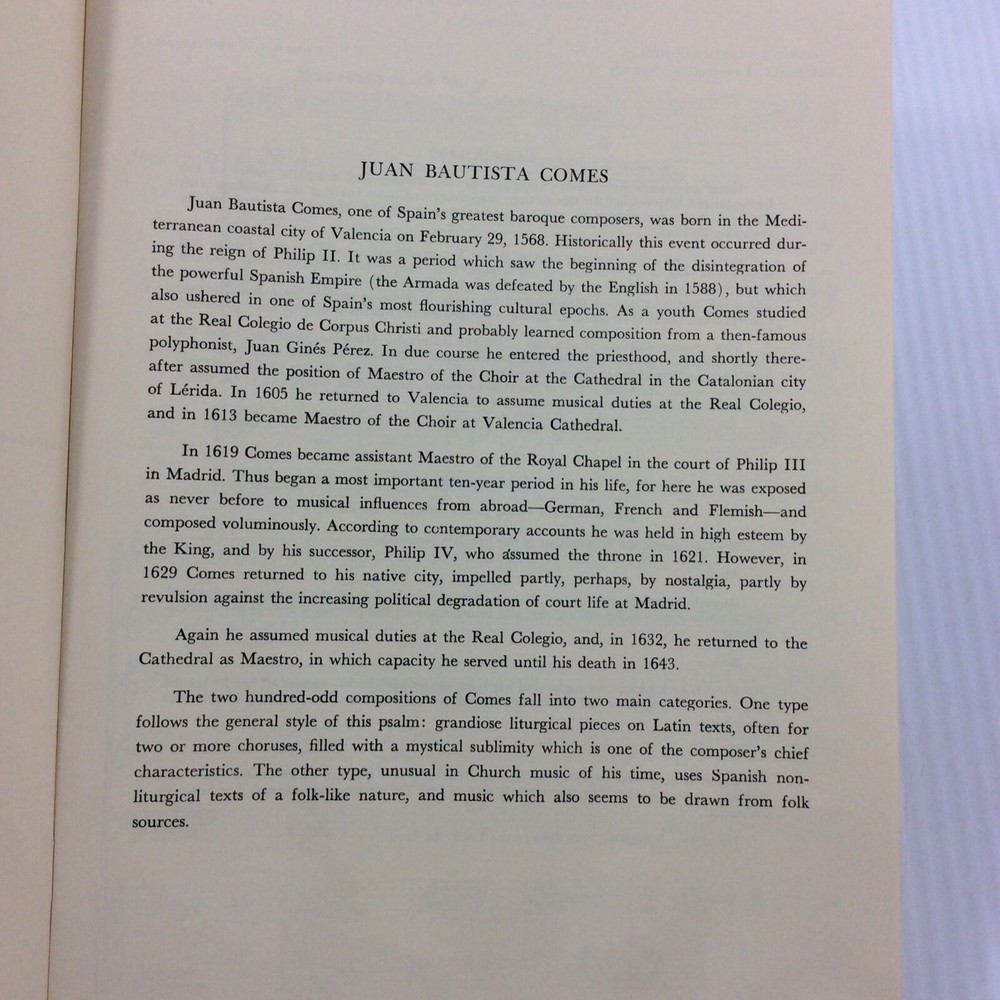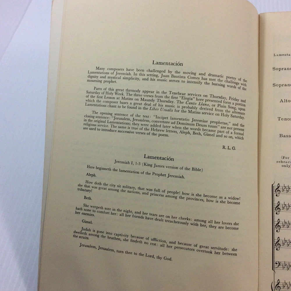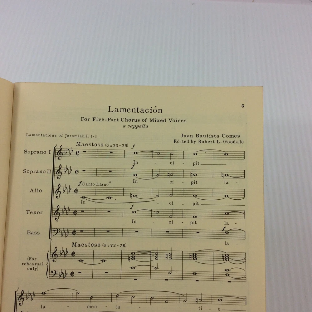 Lamentacion Juan Bautista Comes SATB Choral Music Songbook 1966 Edition