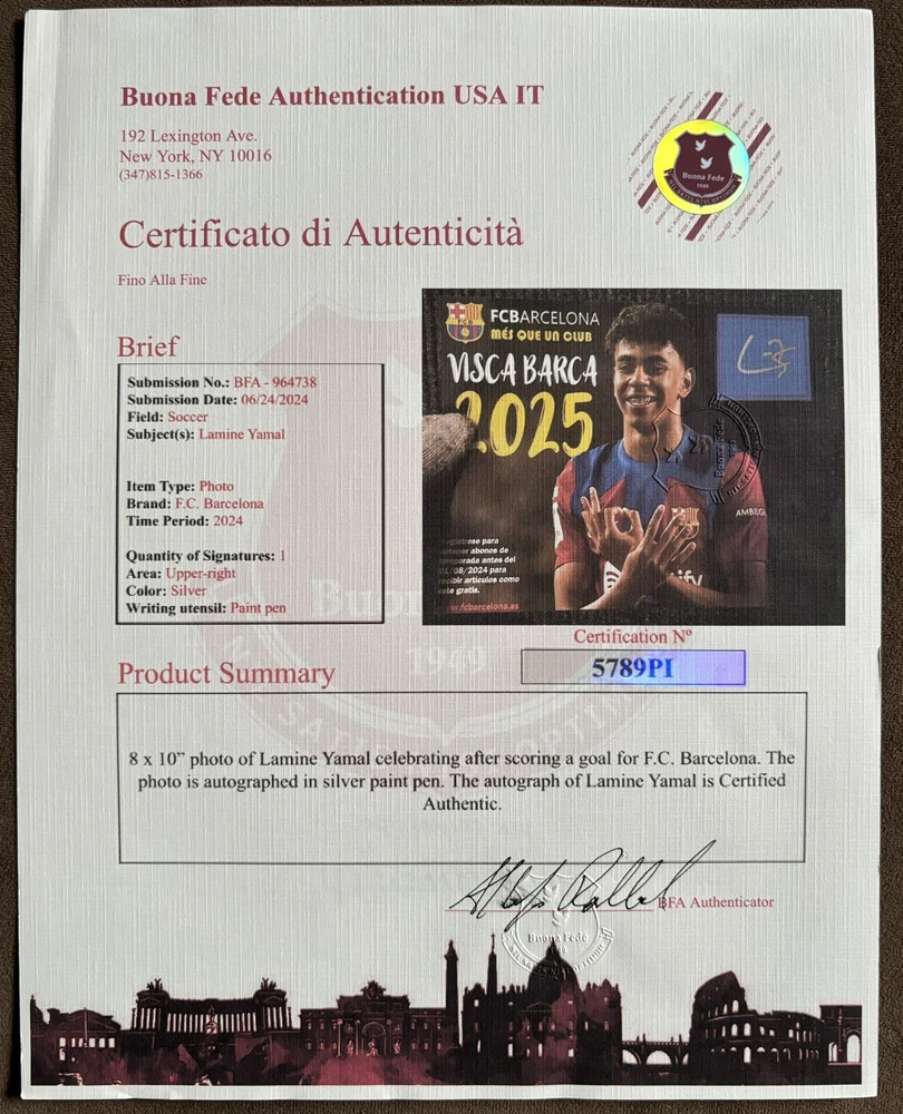 Lamine Yamal signed photograph. Comes with COA seen in photos. Great condition. I got it online from a seller with great reviews Let me know if you have any questions! :)