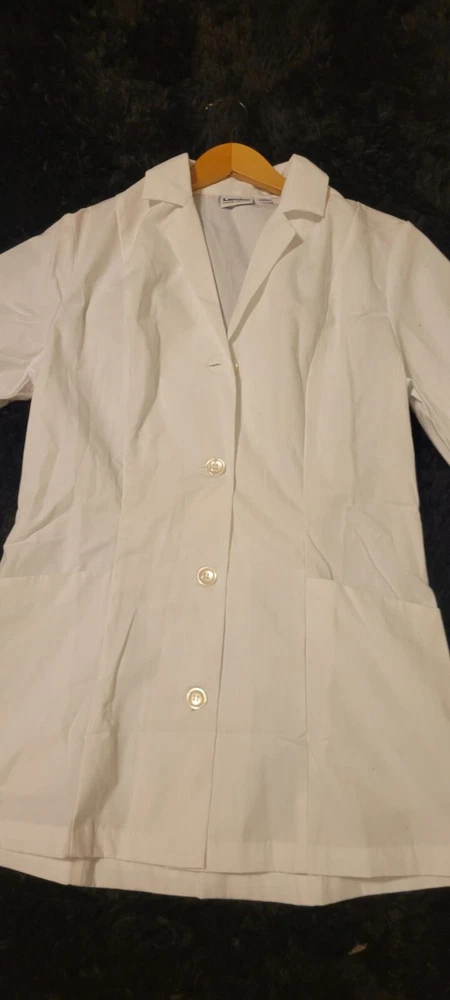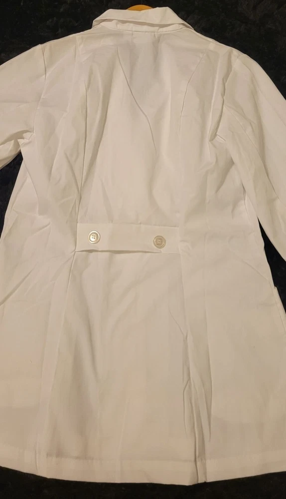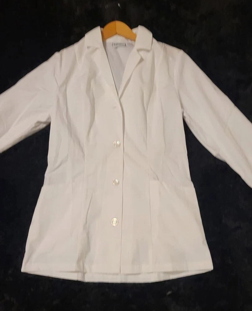 Professional and practical lab coat featuring button-front closure and two front pockets. Ideal for medical professionals and healthcare workers. • Button-Front Closure • Two Front Pockets • Long Sleeves • Professional Design See Photos for Measurements Size: 12 Condition: Pre-Owned Like New Please see all photos as they are part of the description. Always open to reasonable offers!
