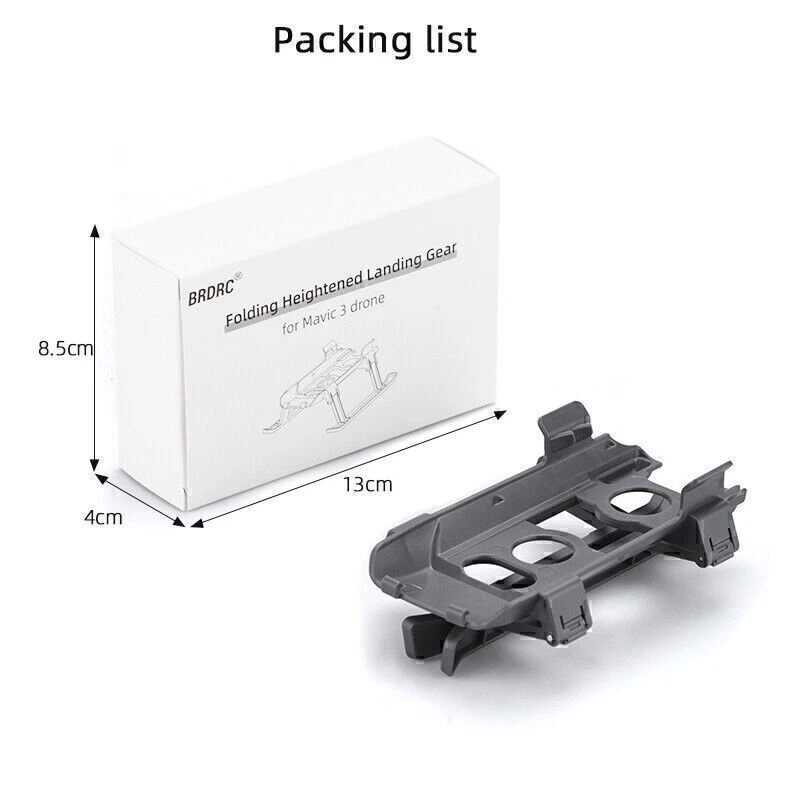 Product Description If you have any questions, please contact customer service first, do not open disputes easily, thank you! Feature: 1. Increase the height between the fuselage and the ground to protect the fuselage and gimbal camera from damage, 2. The height of the front foot is increased by 2cm, and the height of the rear foot is increased by 2.3cm, effectively preventing ground debris from contaminating the aircraft body or damaging the gimbal and fuselage during takeoff and landing, 3. Foldable tripod for easy storage and storage. (Note: When the arm is folded into the bag for storage, the landing gear needs to be removed) Specification: Material: PC+ABS Color: Dark gray Net weight: 27g Product size: 12.5*6.5*6cm Suitable for DJI Mavic 3 Drone and DJI Mavic 3 CINE Drone Package List: 1 * Landing Gear Note: 1.Does not include the Drone and other accessories, 2.Please allow 1-3mm error due to manual measurement. please make sure you do not mind before ordering, 3.Due to the difference between different monitors, the picture may not reflect the actual color of the item,please make sure you do not mind before ordering, Thank you! About Us We accept all payments authorized by eBay. powered by