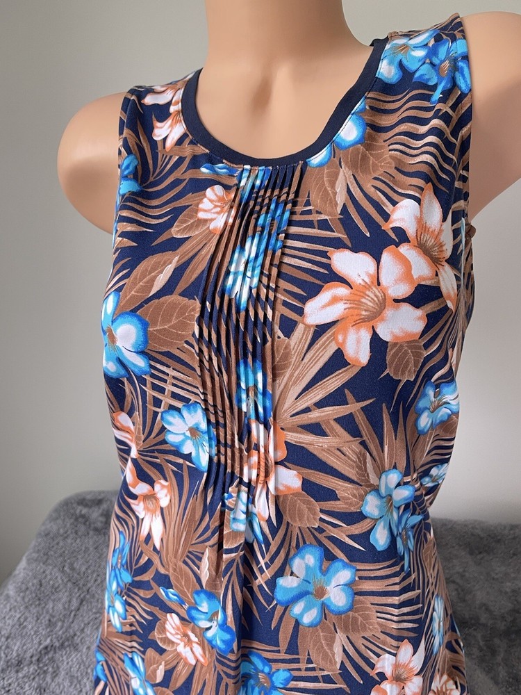 Lands End Blue Floral Pin Tuck Beach Dress Coastal Tropical XS Tall