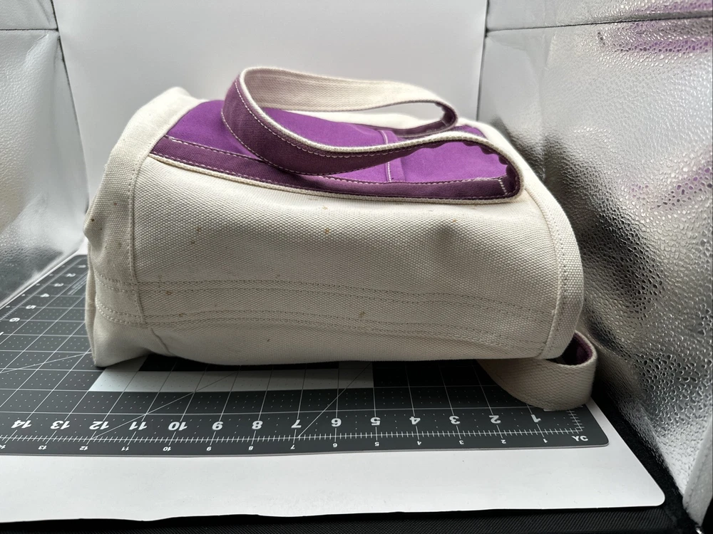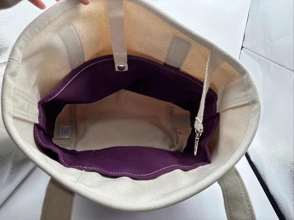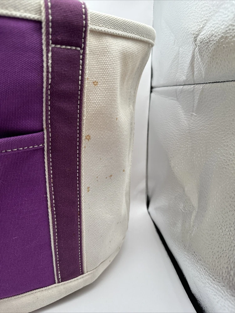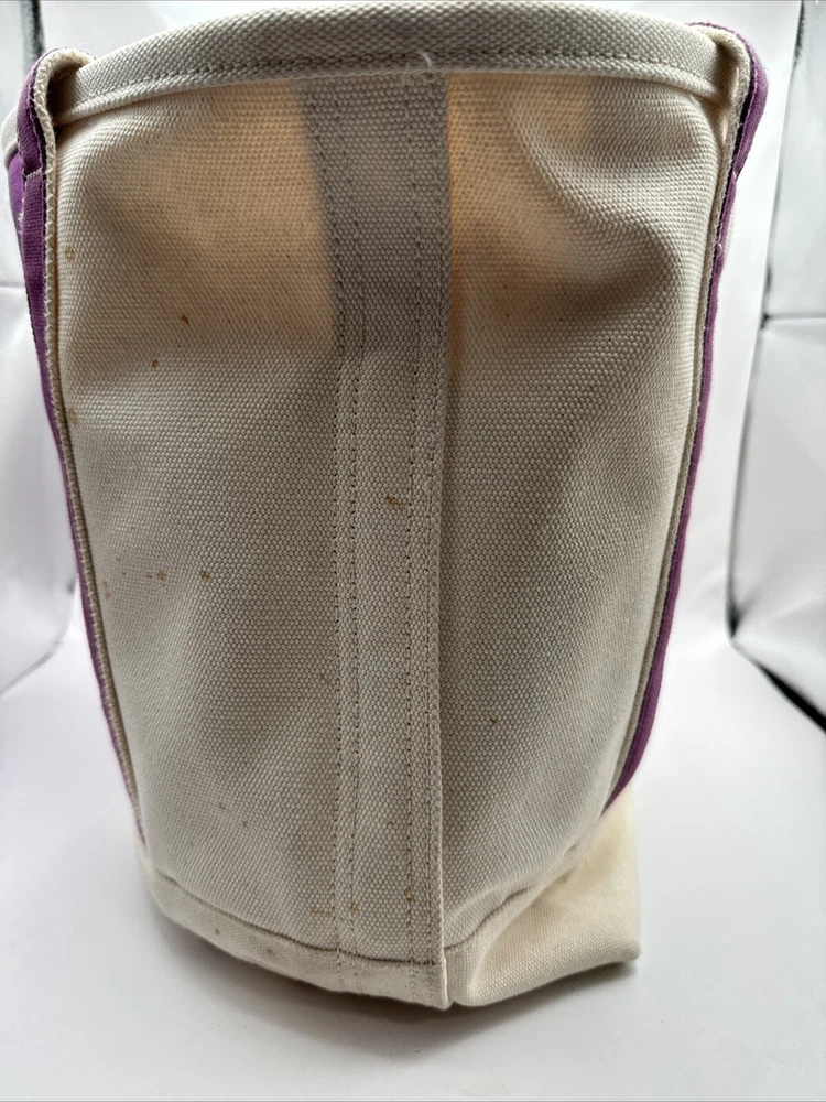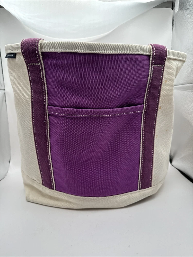 Lands' End Canvas Tote Bag Open Top 5-Pocket Medium Purple 12” x 12” Pre-owned. Couple of spots as shown, cleaning left to buyer. See measurements and pictures.