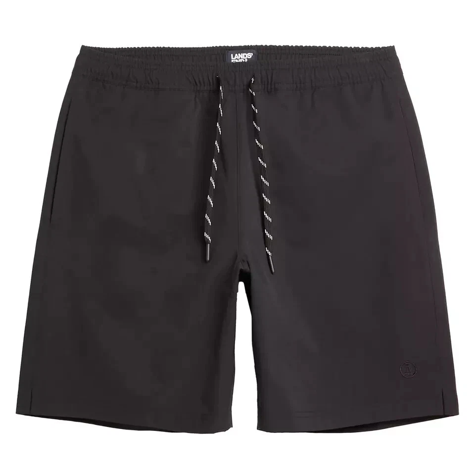 Lands' End Men's UPF 50 Quick-Dry Swim Shorts Size: Medium Color: Black Content: Shell: 55% Elasterell-P / 45% Recycled Polyester Linning: 90% Polyester / 10% Spandex
