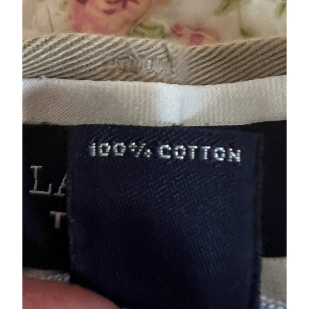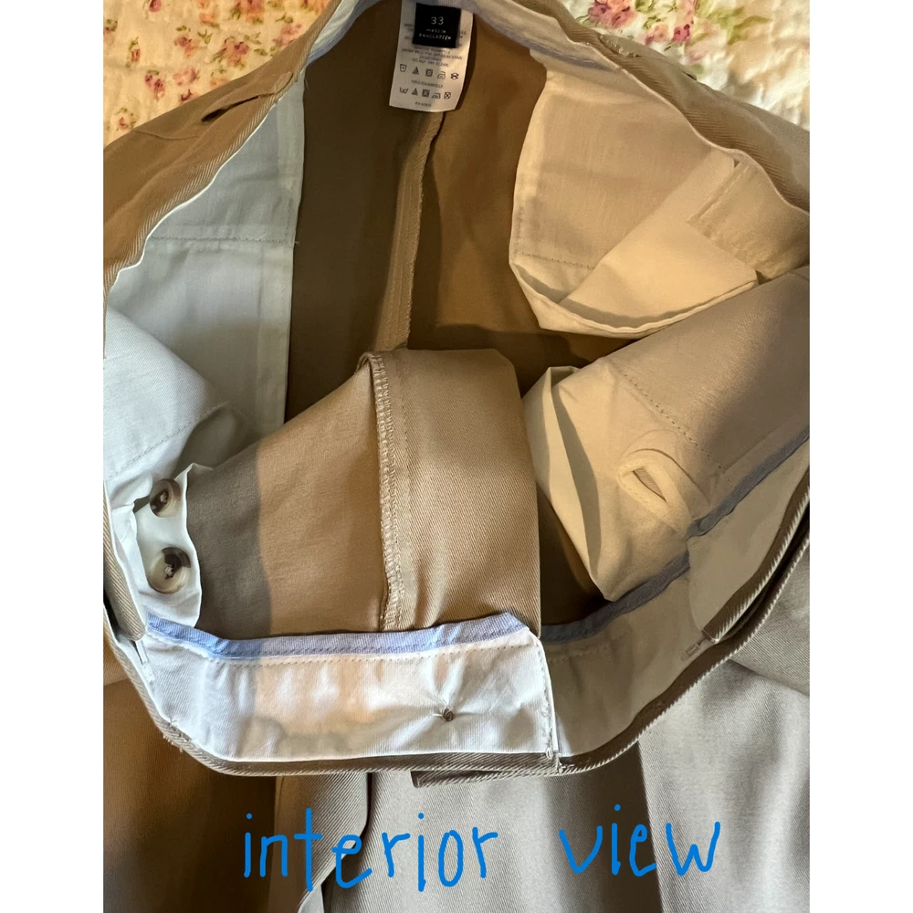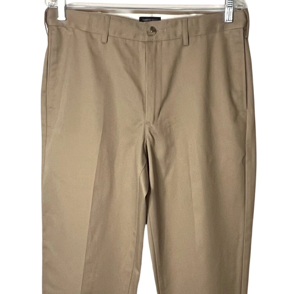 33" waist 30" inseam 11" rise Lands' End pants beige color solid pattern perfect for any occasion, whether it be a casual day out or a business meeting flat front straight leg style breathable cotton fabric slash pockets zip and button closure machine washable all items stored in smoke-free / pet-free home
