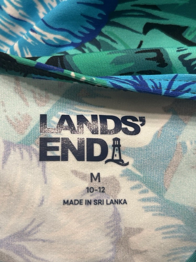 Lands End Rash Guard Top Swim Shirt Medium 10-12 Blue Green Floral UPF SUN Excellent pre-owned condition Length:25” Chest across:19.5” Long Sleeve Allows for stretch 50 UPF protection against UV rays Nice! BG25