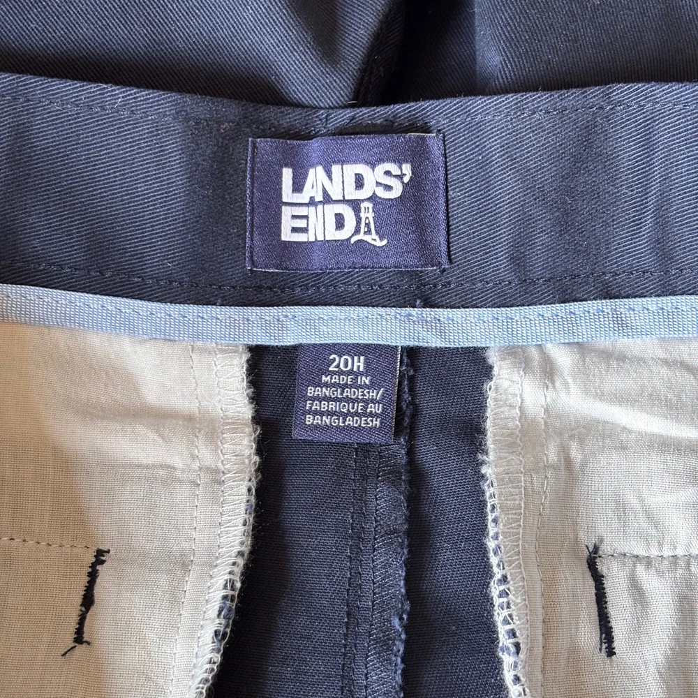 Size: 20 Husky Department: Boys Style: Chino Color: Blue Season: Fall, Spring, Summer, Winter Fit: Regular Country of Origin: Bangladesh Inseam: 9.5 in Fabric Type: Twill Pattern: Solid Features: Wrinkle Resistant, Adjustable Waist, Pockets, Comfort, Breathable, Easy Care Brand: Lands' End Occasion: Business, Casual, Christening, Formal, Party, Travel, Wedding Front Type: Flat Front Closure: Zip Theme: Classic, Preppy, Nautical