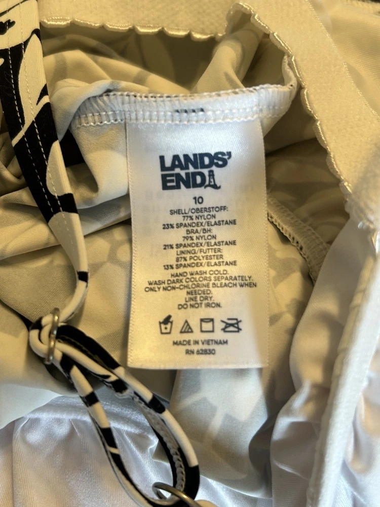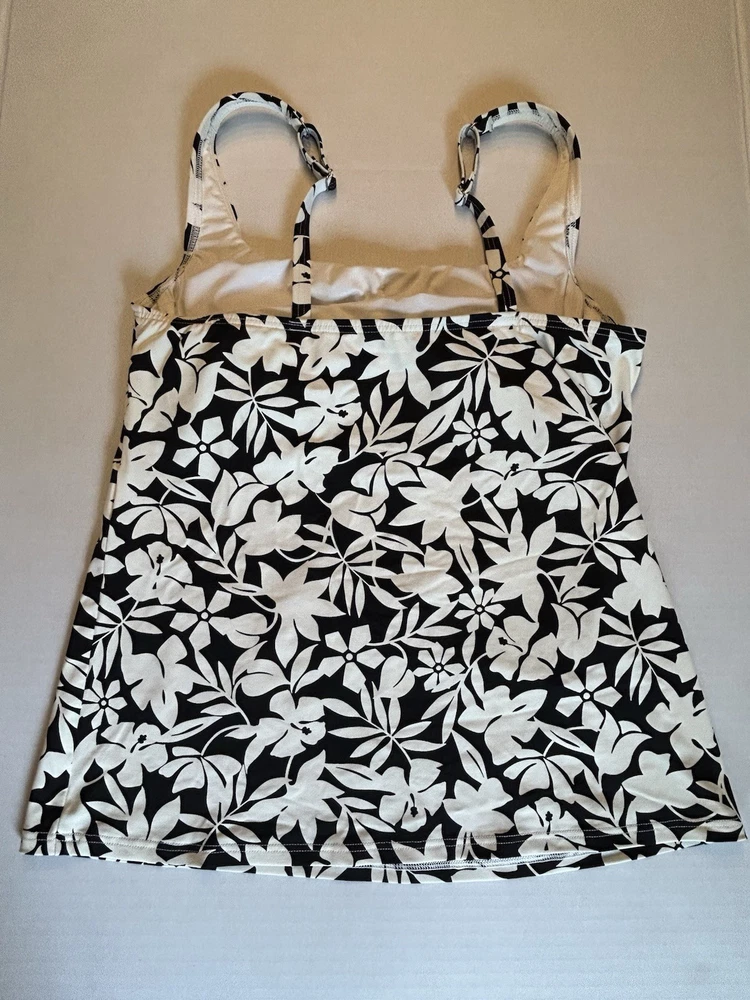 Lands End Swim Tankini Top Underwire Black White Floral UPF 50 Size 10 Excellent pre-owned condition Length:24” Chest across:16” Nice! BG10