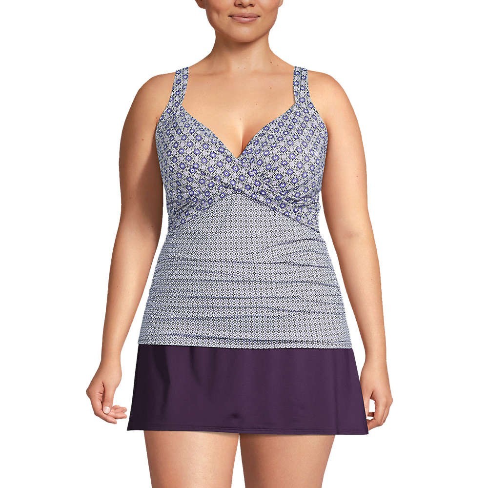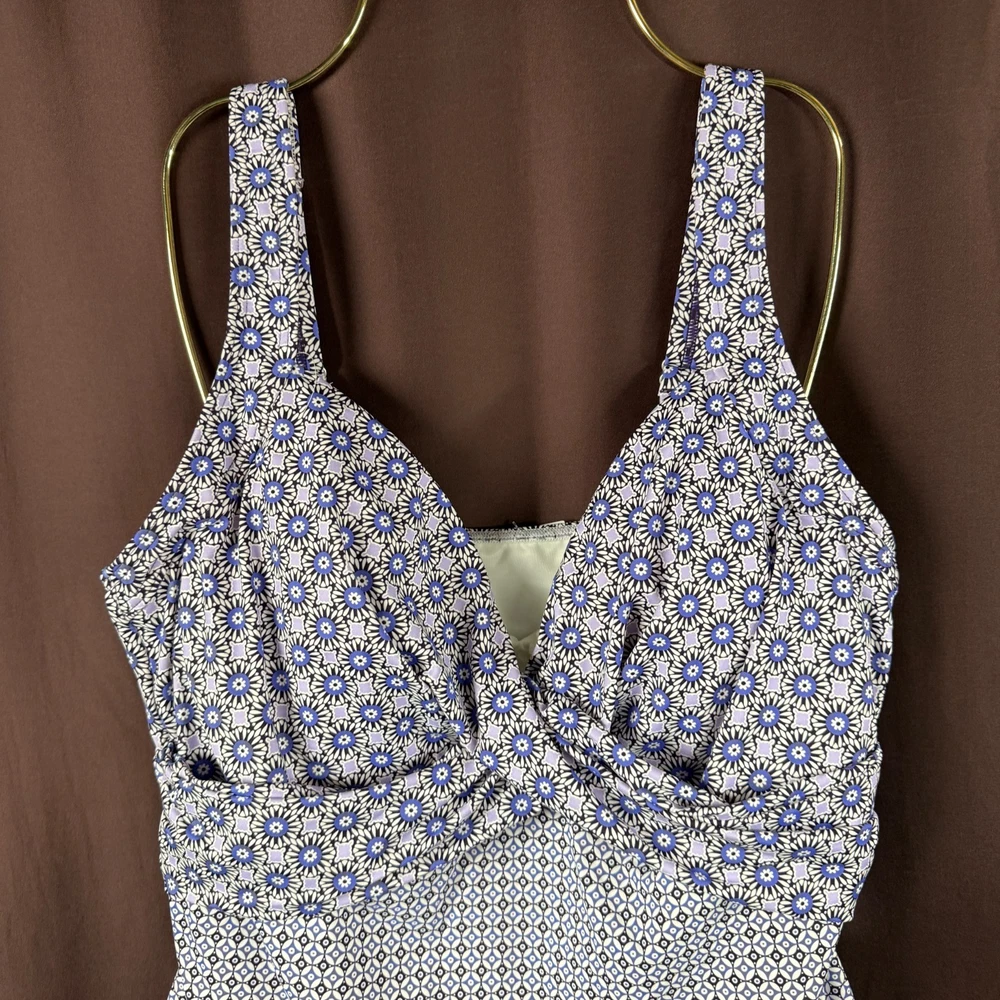 Lands' End Women's 14-18W LONG V-Neck Wrap Underwire Tankini Swimsuit Top Blackberry Geo Mix This item is completely new but has a marker mark on it because previously it was used as a photo sample. Please DM what size you need. Thank you. Size Women's 14 Long Size Women's 16 Long Size Women's 18W Long
