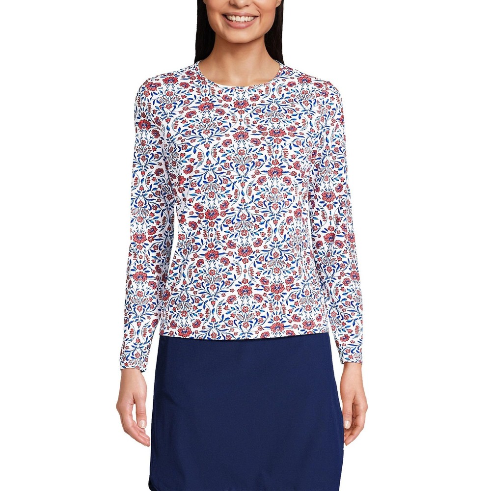 Lands' End Women's 1X LONG Swim T-Shirt Long Sleeve Rash Guard White/Turquoise Adorn Floral Please DM what size you need. Thank you. Size Women's 1X Long