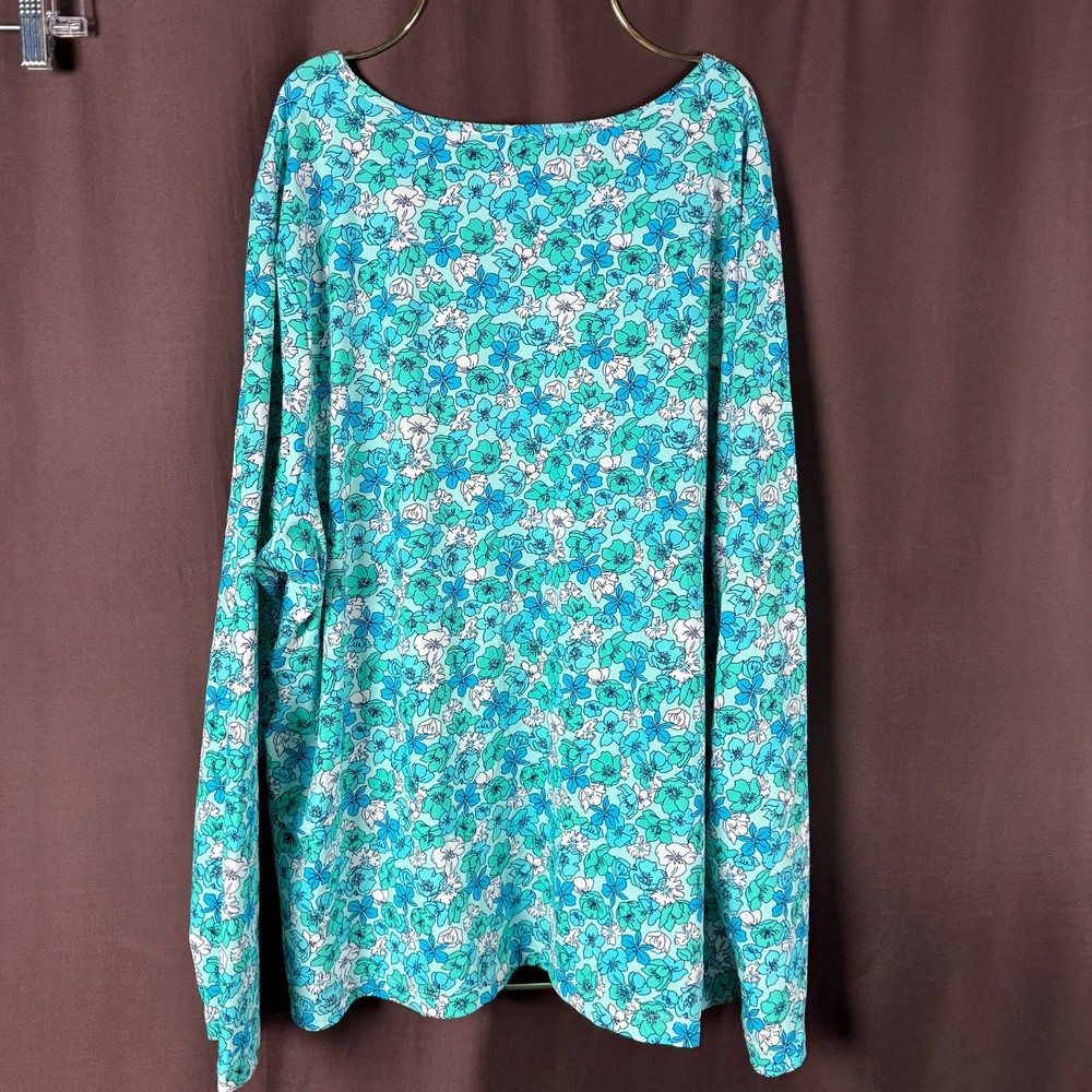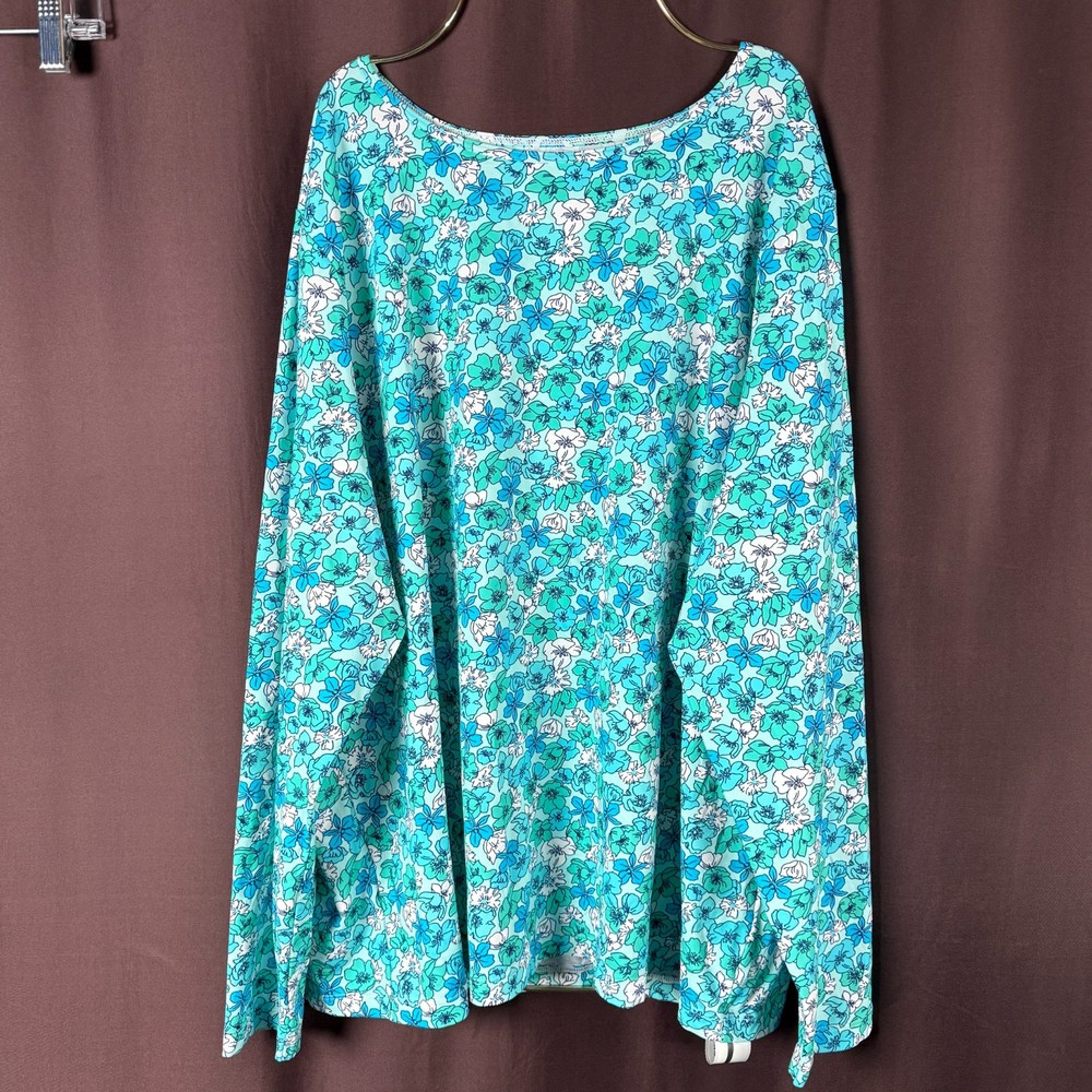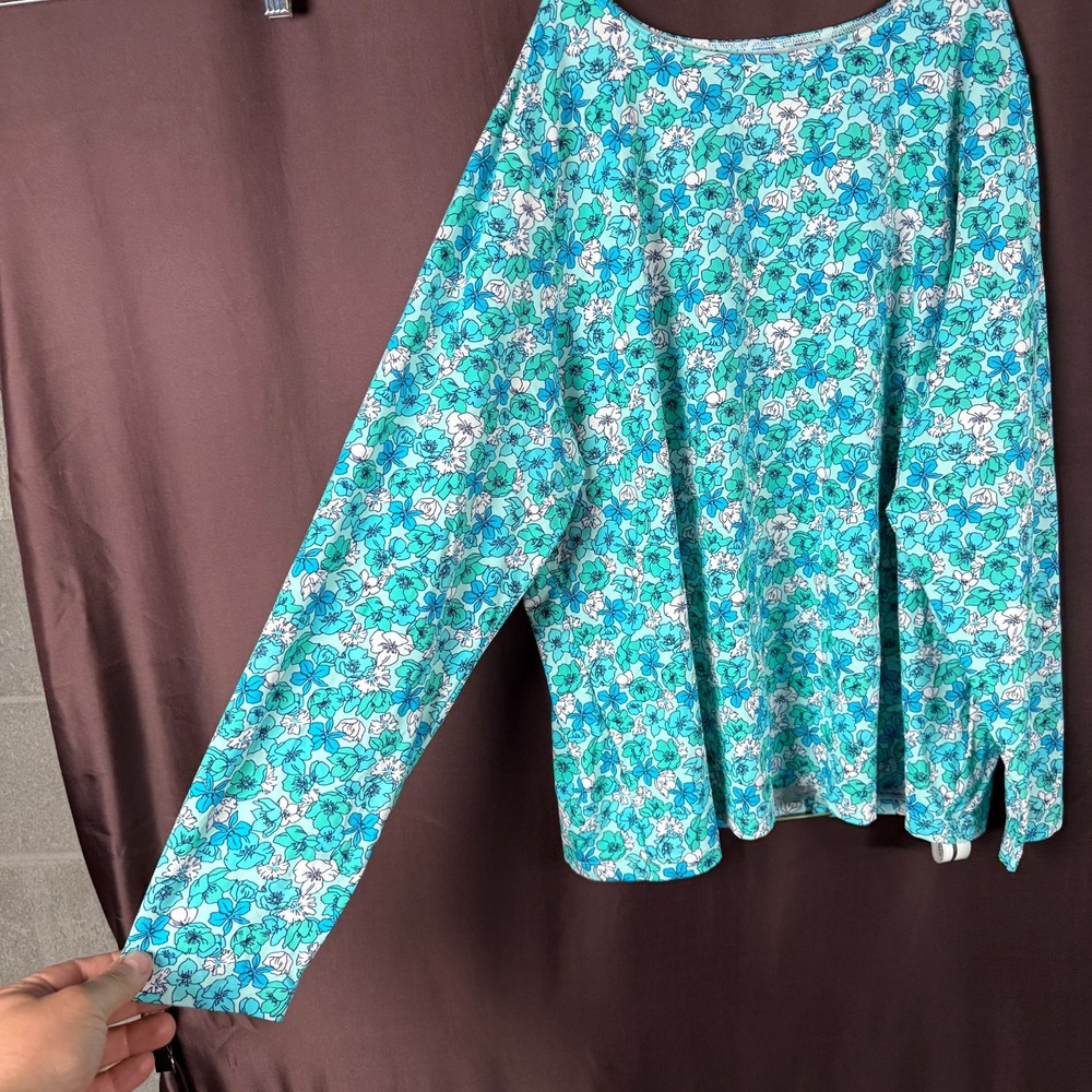 Lands' End Women's M-1X LONG Crew Neck Long Sleeve Rash Guard UPF 50 Swim Tee Turquoise Aqua Floral Please DM what size you need. Thank you. Size Women's M Long Size Women's 1X Long