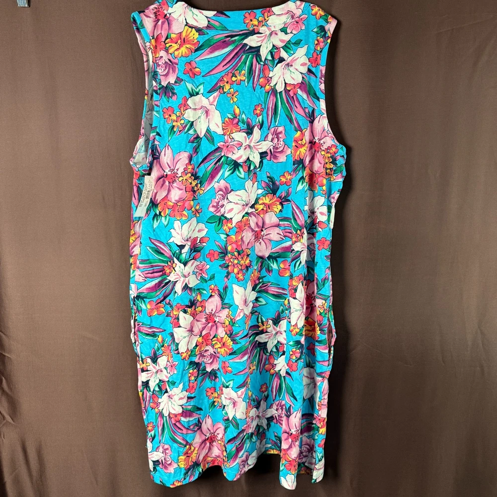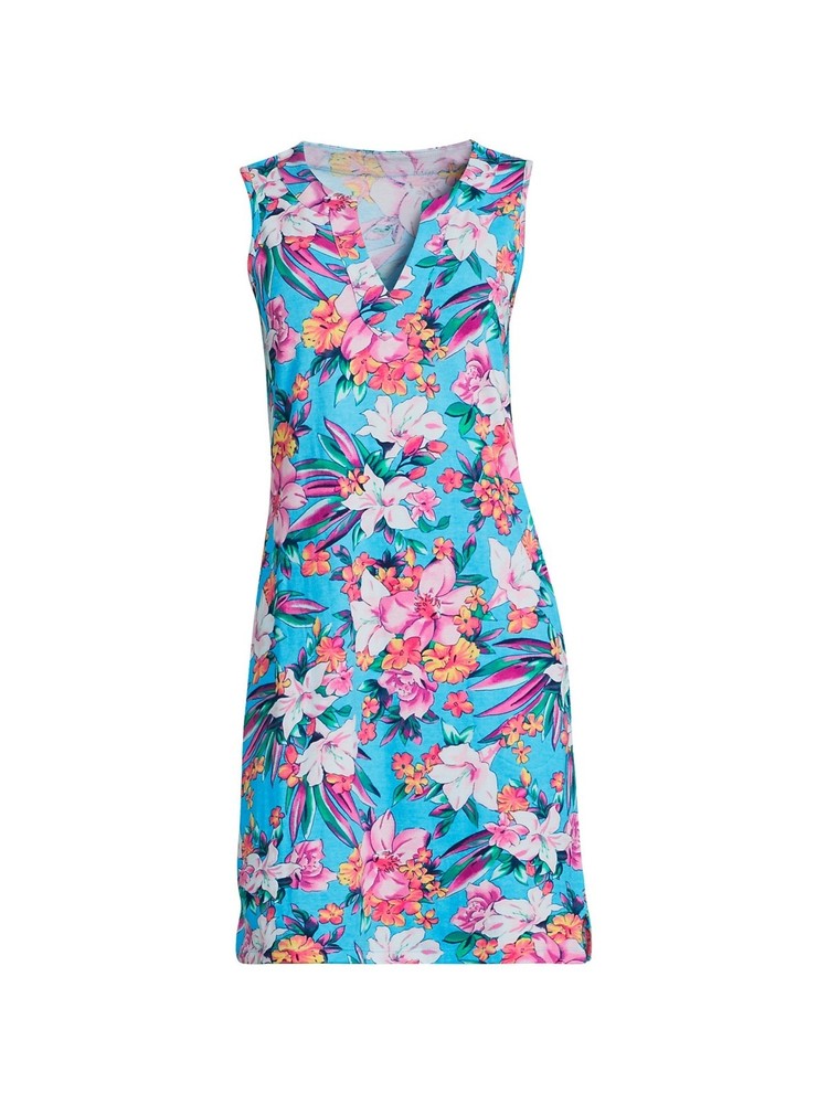 Lands' End Women's M, M-1X LONG Swim Cover-up Dress Cotton Jersey Sleeveless Turquoise Lily Palm This item is completely new but has a marker mark on it because previously it was used as a photo sample. Please DM what size you need. Thank you. Size Women's M Size Women's M Long Size Women's 1X Long