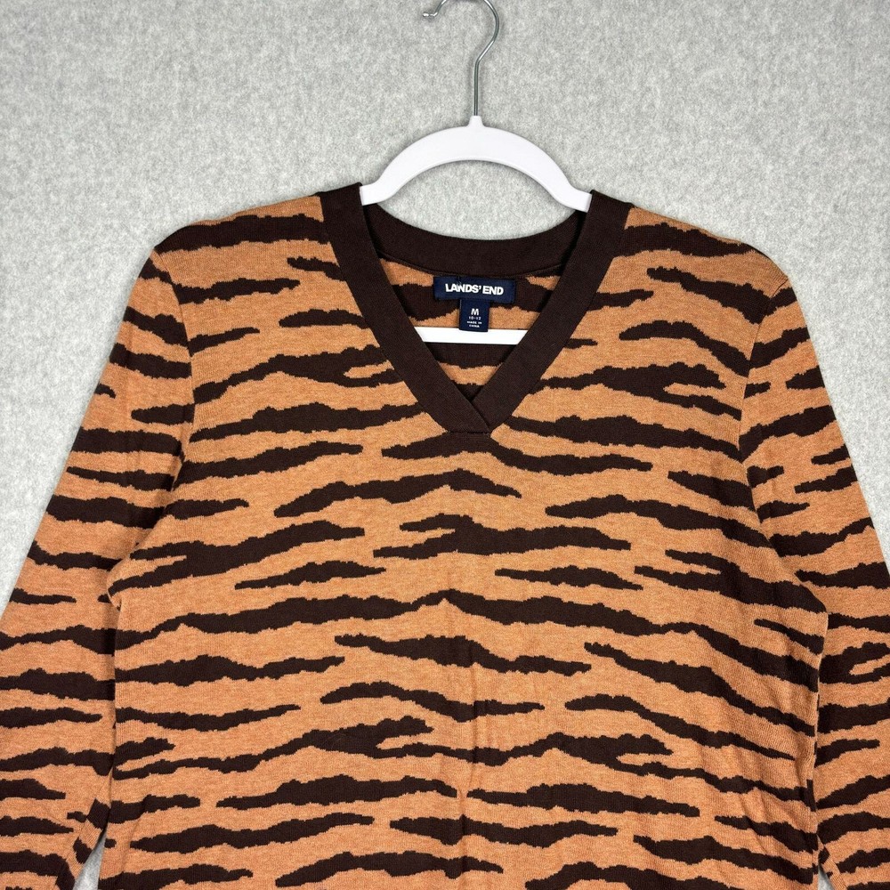 Lands End Sweater Womens Medium Brown Tunic Animal Zebra Soft Cozy Thin 100% Cotton V Neck Long Sleeve Lightweight Stretch Pre-owned condition: minimal to no signs of wear, no stains or holes SKU 5583 **Please see all pictures for full item condition and details** - Ships Same/Next Day, Professional Seller, Offers Welcome, Like or watch for price drops - Item in photos is exact item you will receive - I list new items daily, be sure to browse my store/closet for more items - Bundle pricing and combined shipping available for additional savings - Feel free to send a message
