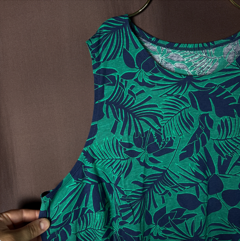 Lands' End Women's 18, L-2X LONG Sleeveless Swim Cover-up Maxi Dress Cotton Jersey Navy/Emerald Palm Foliage Please DM what size you need. Thank you. Size Women's 18 Size Women's L Long Size Women's 2X Long