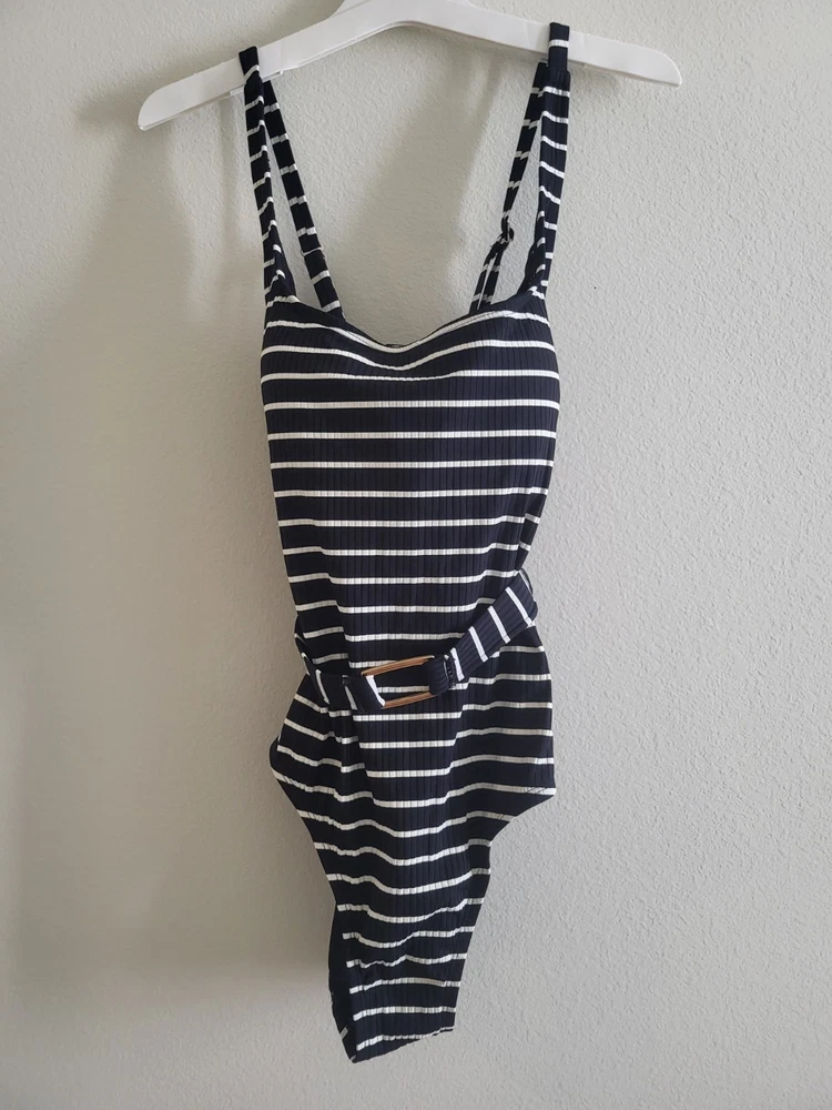 Number of Pieces: ONE PIECE Features: Belted Size: S Theme: Beach Size Type: Regular Brand: Lands' End Country of Origin: China Accents: Belted Pattern: Striped Type: One Piece Color: Black Garment Care: Machine Washable Personalize: No Department: Women Vintage: No Material: Nylon Swim Top Style: Athletic