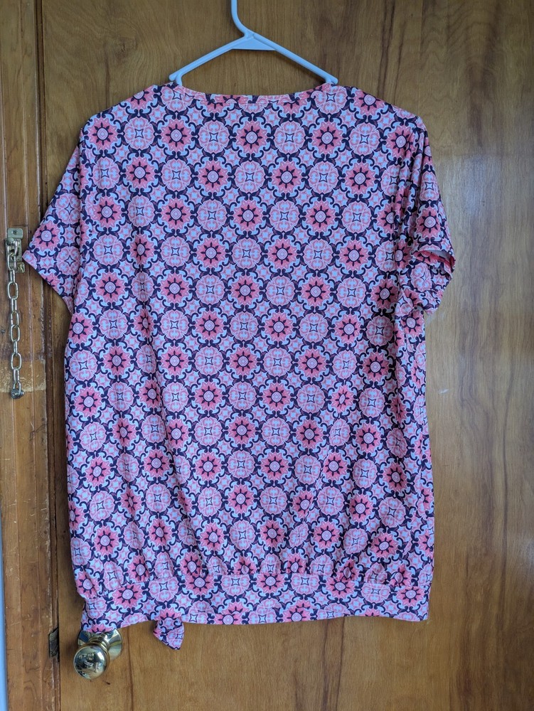 Lands End swim shirt - no cups or lining Comfy and stretchy White background with pink/coral and navy blue medallion pattern