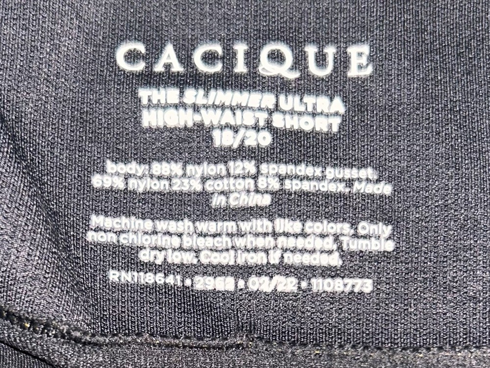 The Lane Bryant Cacique The Slimmer Ultra High Waist Thigh Shaper in black, size 18-20, is a firm compression shapewear designed for women. Made from a nylon blend material, this high-waisted shaper focuses on the compression area of the buttocks, waist, abdomen, and legs. The extra firm compression level helps to smooth and shape these areas, providing a sleek and flattering silhouette. Hand wash only, this shapewear is crafted by the trusted brand Cacique to deliver a comfortable and supportive fit for everyday wear.