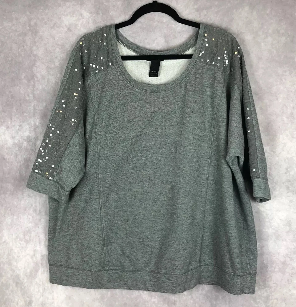 Lane Bryant Gray Pullover Sweater Top Size 18/20W 3/4 length sleeve's Clear sequins sewn on the shoulders & sleeve's Measures approximately: 26.5" armpit-armpit 27.5" length Good preowned condition one small section has some sequins missing see last picture. (K)