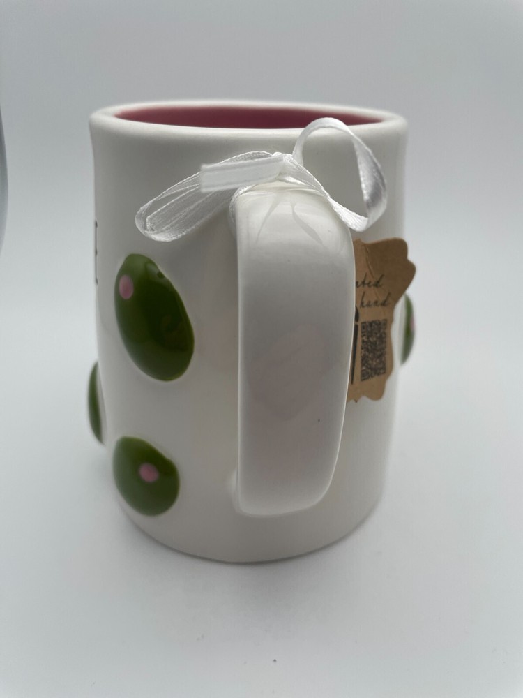The Lang By Design Olive You Hand Painted Embossed 16oz Coffee Mug is a unique and stylish addition to any kitchen. This round ceramic mug features a novelty design with an olive pattern, hand painted in vibrant multicolor. With a contemporary style and a capacity of 16 fl oz, this microwave and dishwasher safe mug is perfect for all occasions.