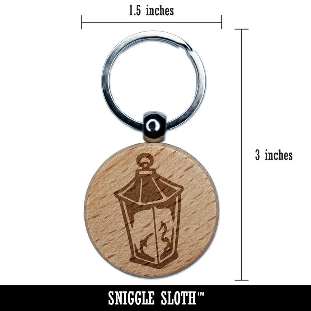 Lantern Lamp with Fire Engraved Wood Round Keychain Tag Charm